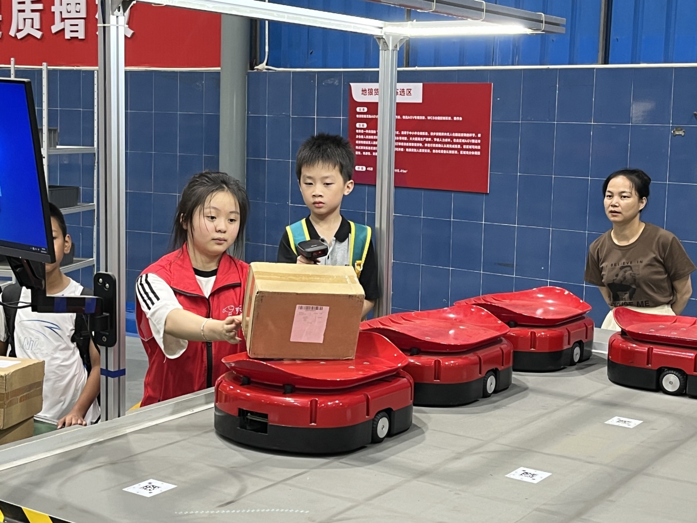 活动首站来到广西交通技师学院物流实训基地,孩子们在专业教师的带领下,近距离观摩自动化快递分拣系统的运作流程。高速运转的传送带、智能识别的分拣机器人引得孩子们连连惊叹。在VR实景体验区,小朋友们戴上虚拟现实设备,化身“小小快递员”,模拟完成派件、客户沟通等任务,切身感受父母的工作日常。“原来送快递要爬这么多楼梯!”一名体验后的孩子感慨道。