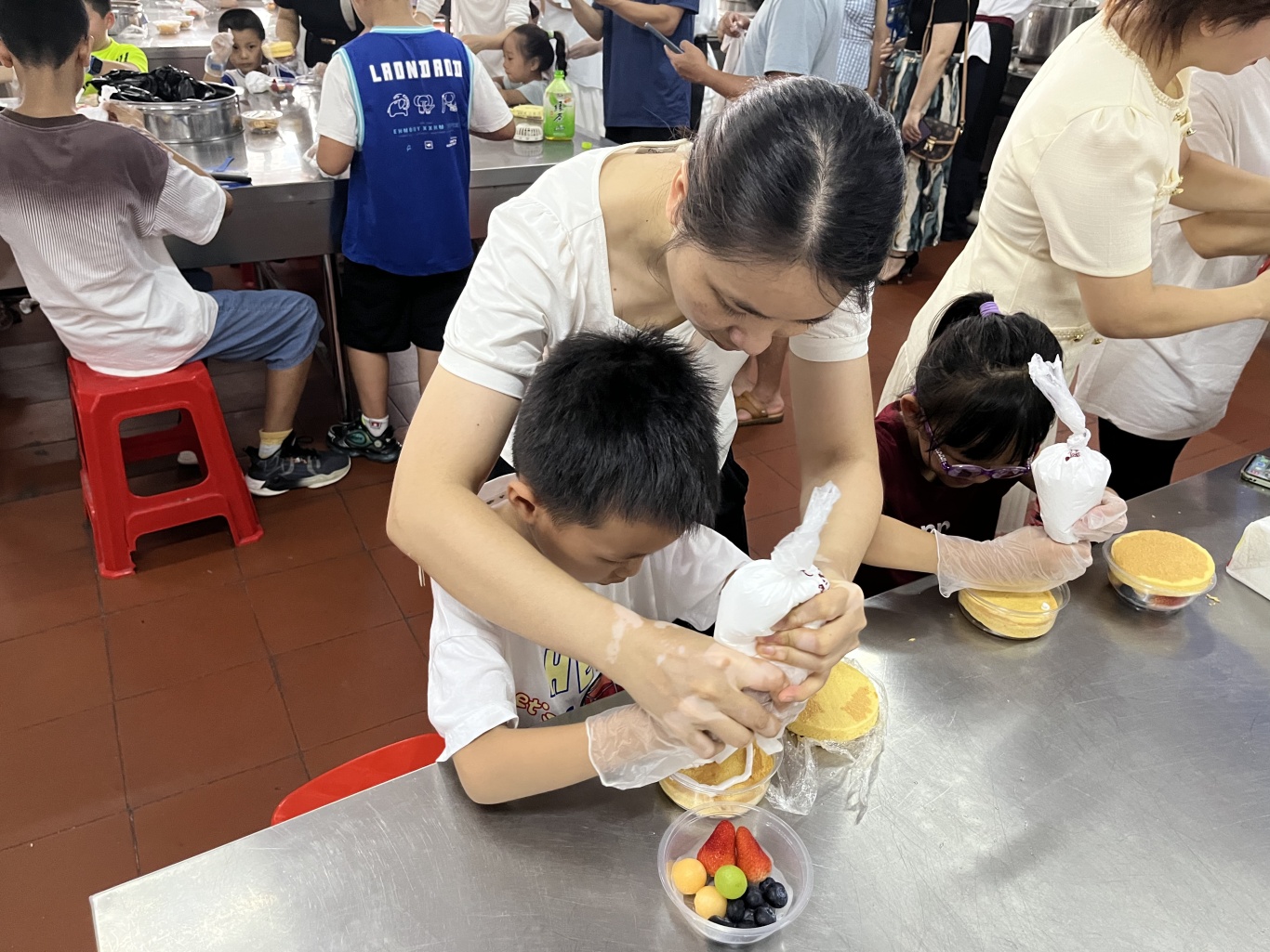 活动尾声,亲子家庭移步烘焙教室参与DIY手工蛋糕制作。孩子们发挥创意,与父母协作涂抹奶油、点缀水果,将劳动成果化为甜蜜礼物。现场欢声笑语不断,不少职工表示:“平时忙于工作很少陪孩子,今天不仅让孩子学到了知识,更增进了我们的感情。”