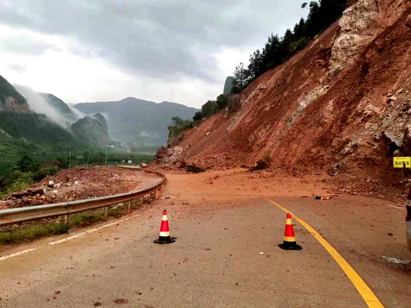G357线灵川县大境瑶族乡大境村委铁坑村附近路段右侧因降雨发生上边坡塌方交通中断