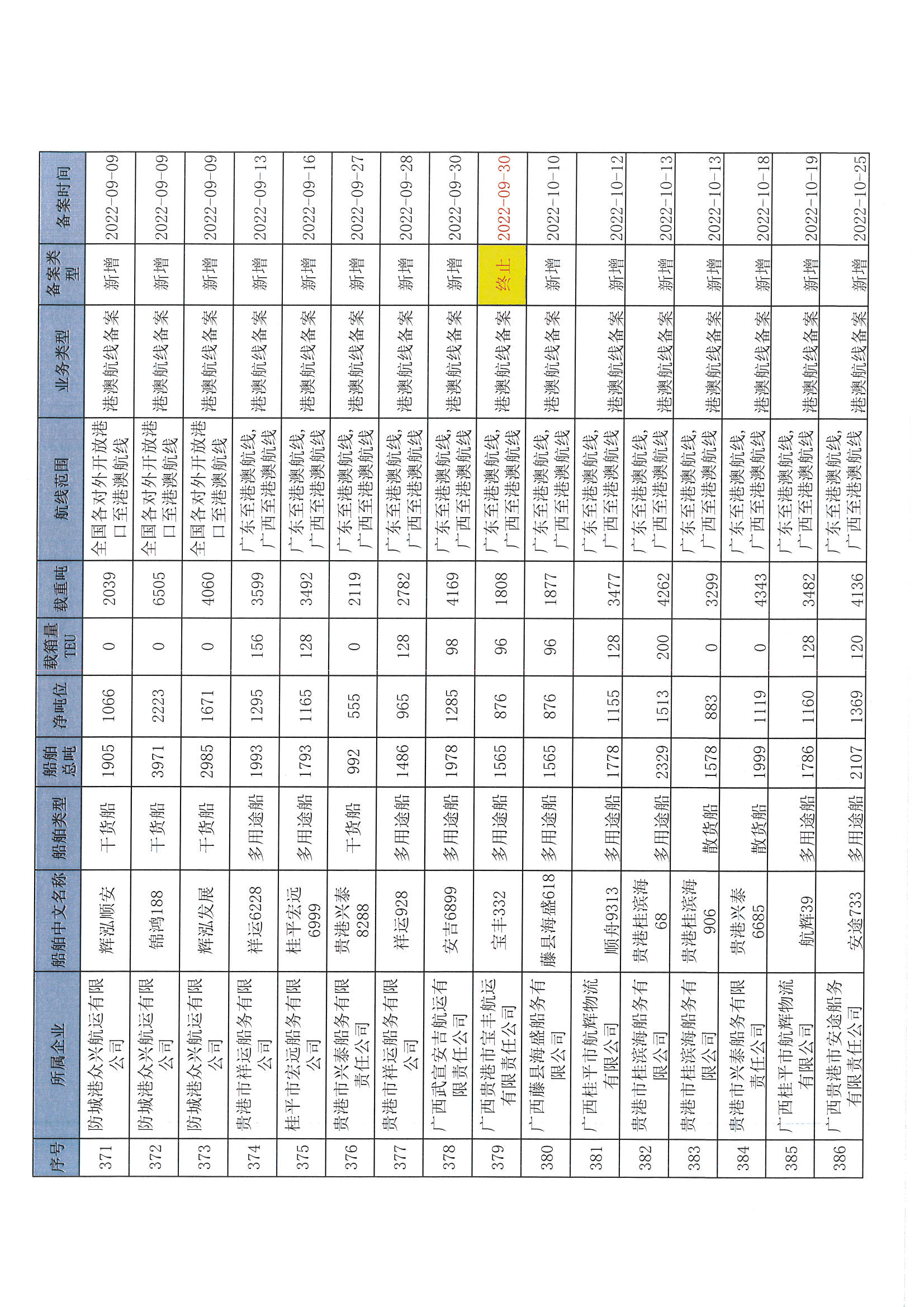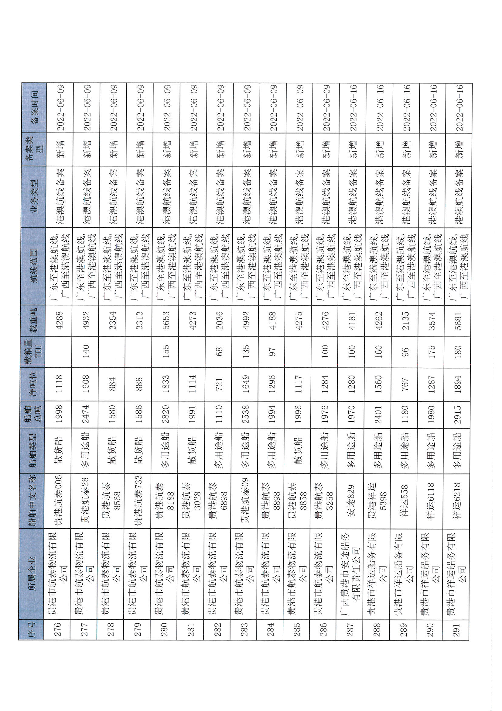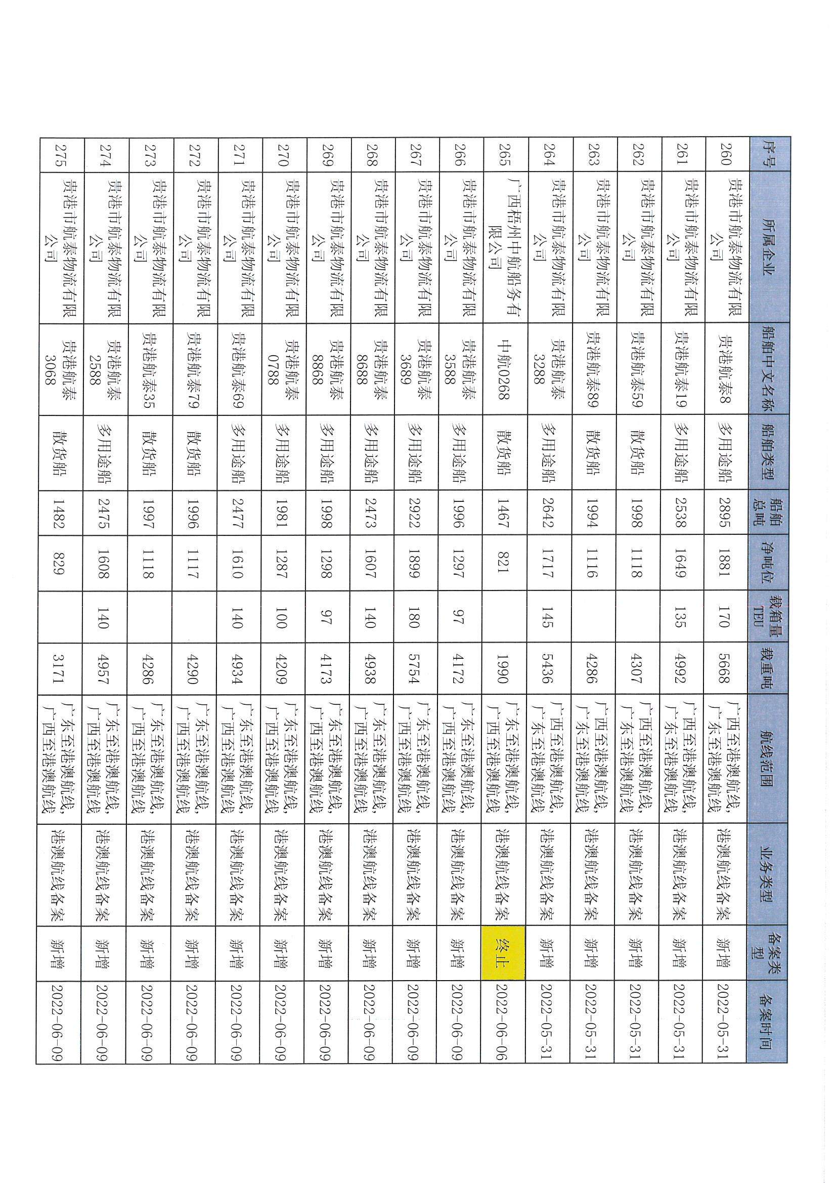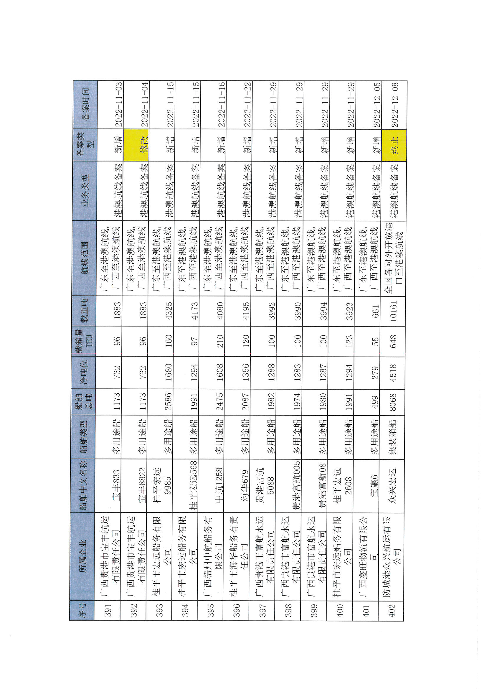 截至2022年12月11日在91porn部水路运输建设综合管理信息系统完成备案的港澳航线水路运输船舶