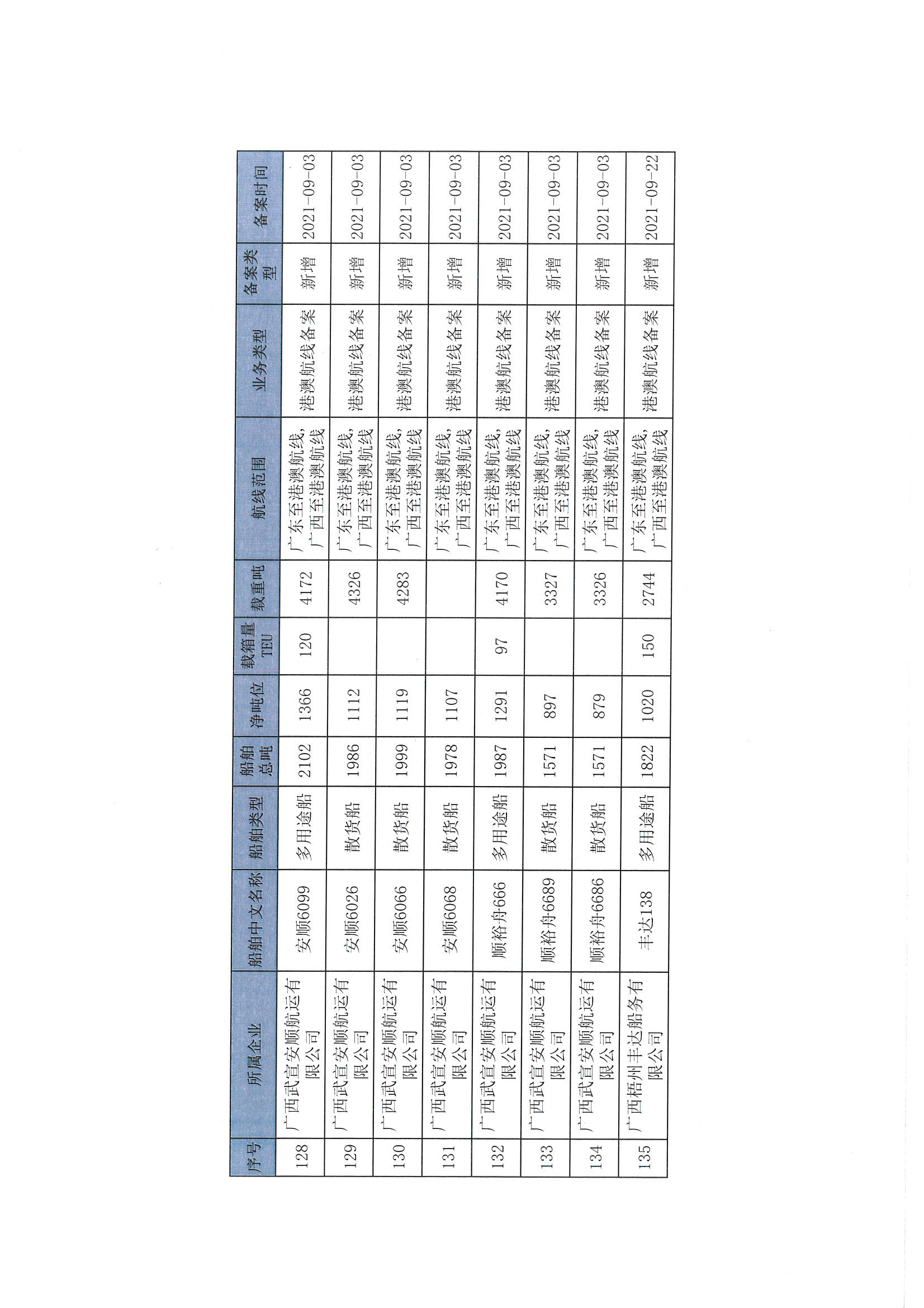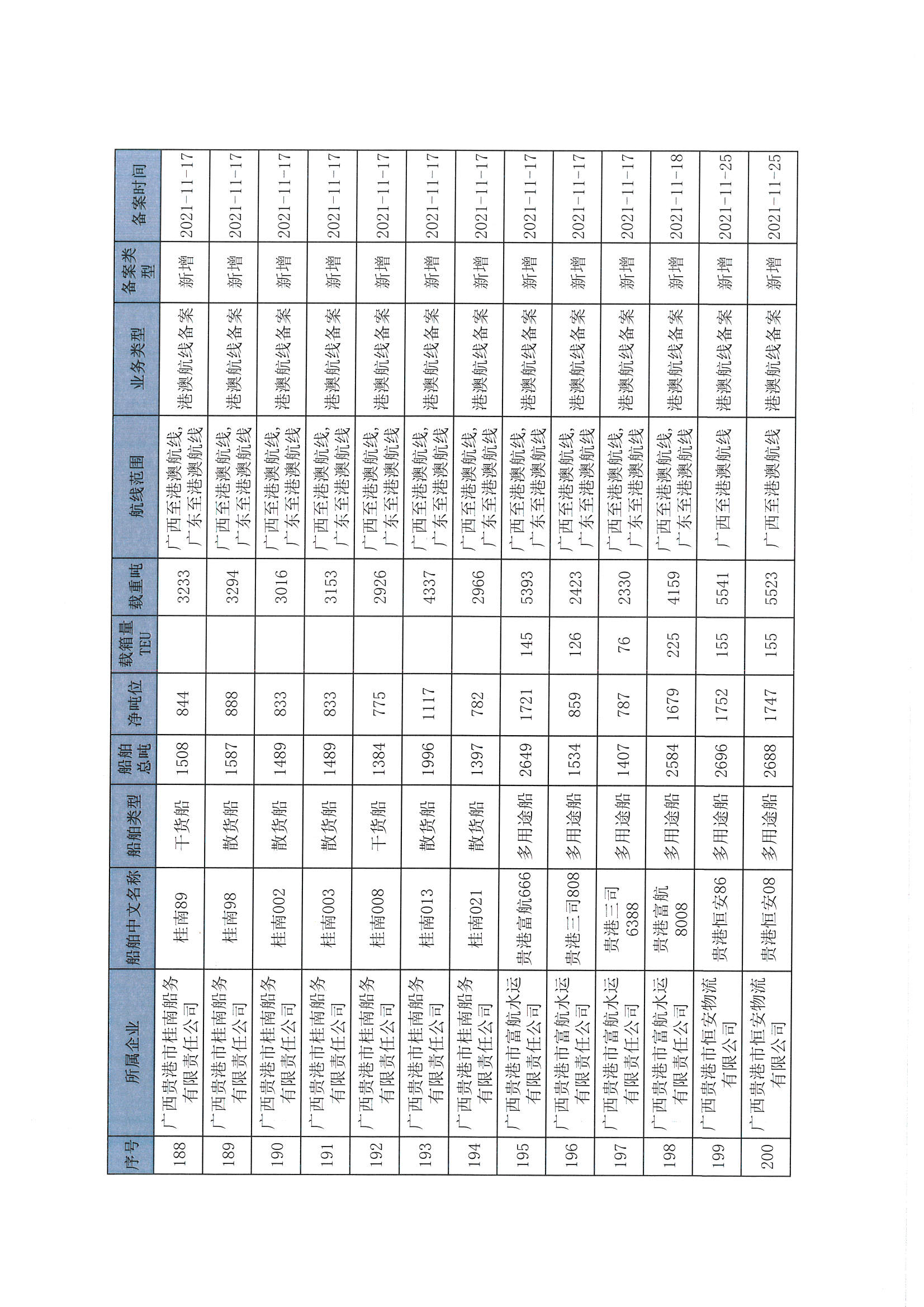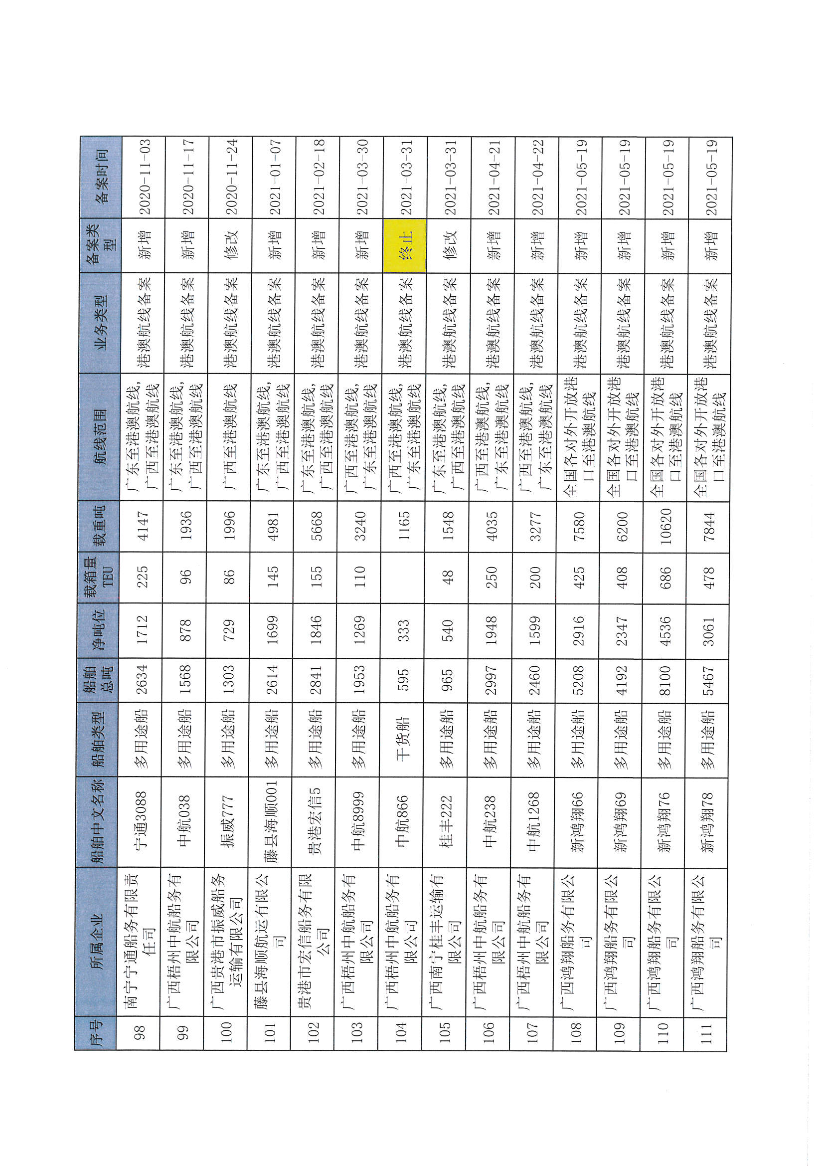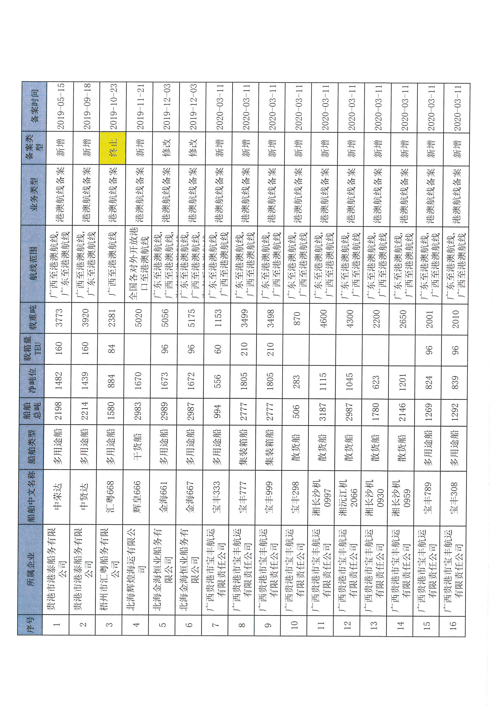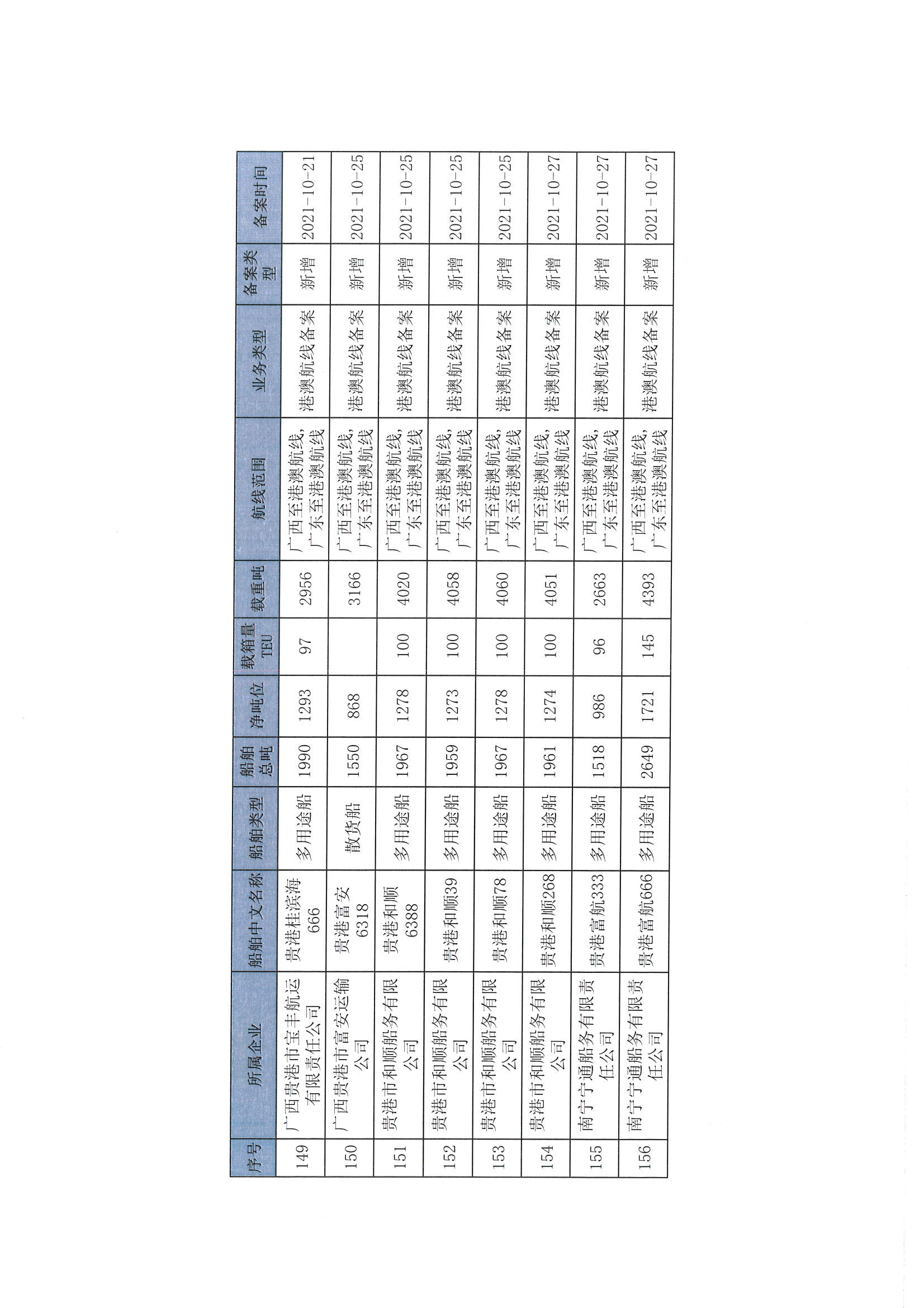 截至2022年12月11日在91porn部水路运输建设综合管理信息系统完成备案的港澳航线水路运输船舶