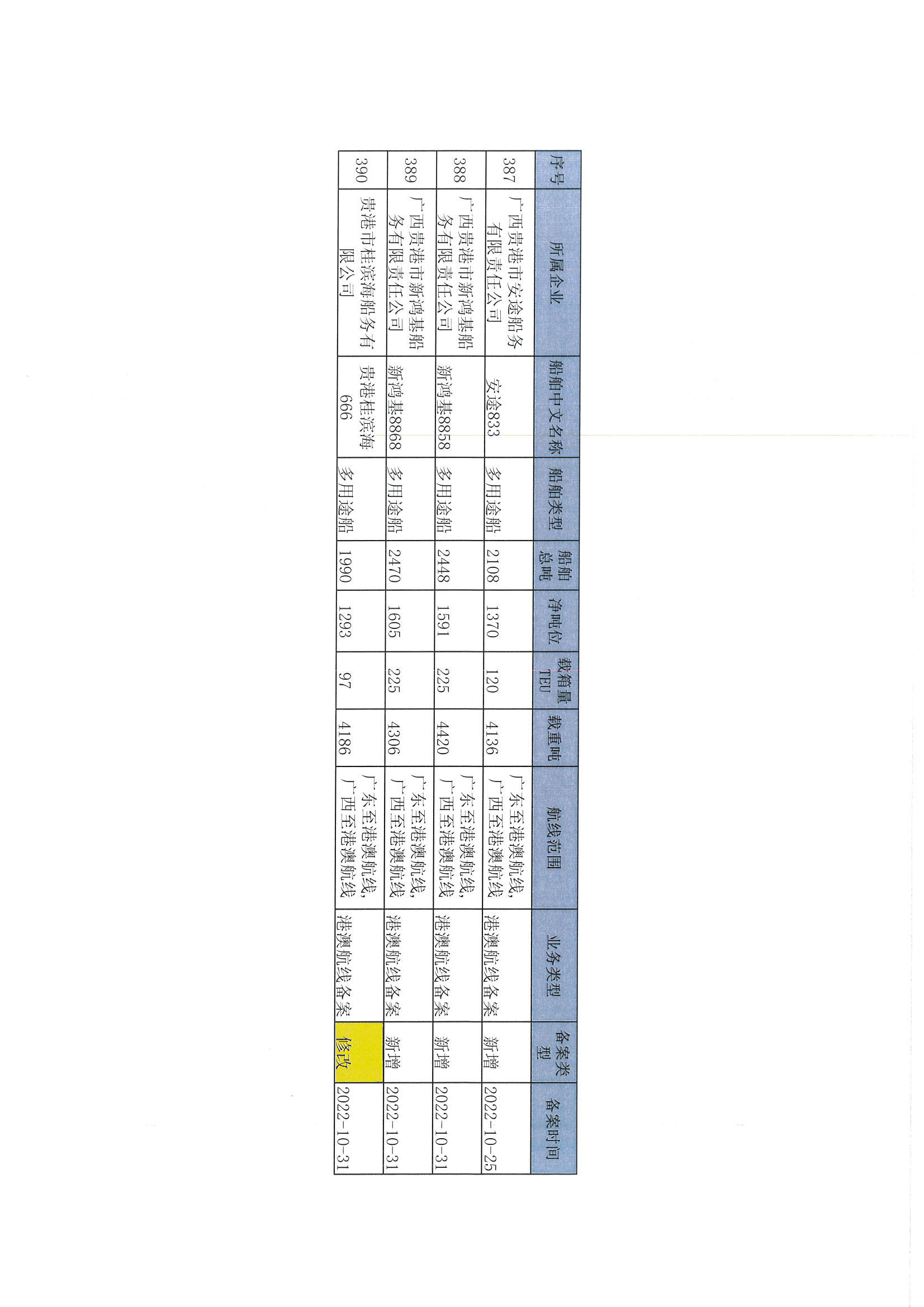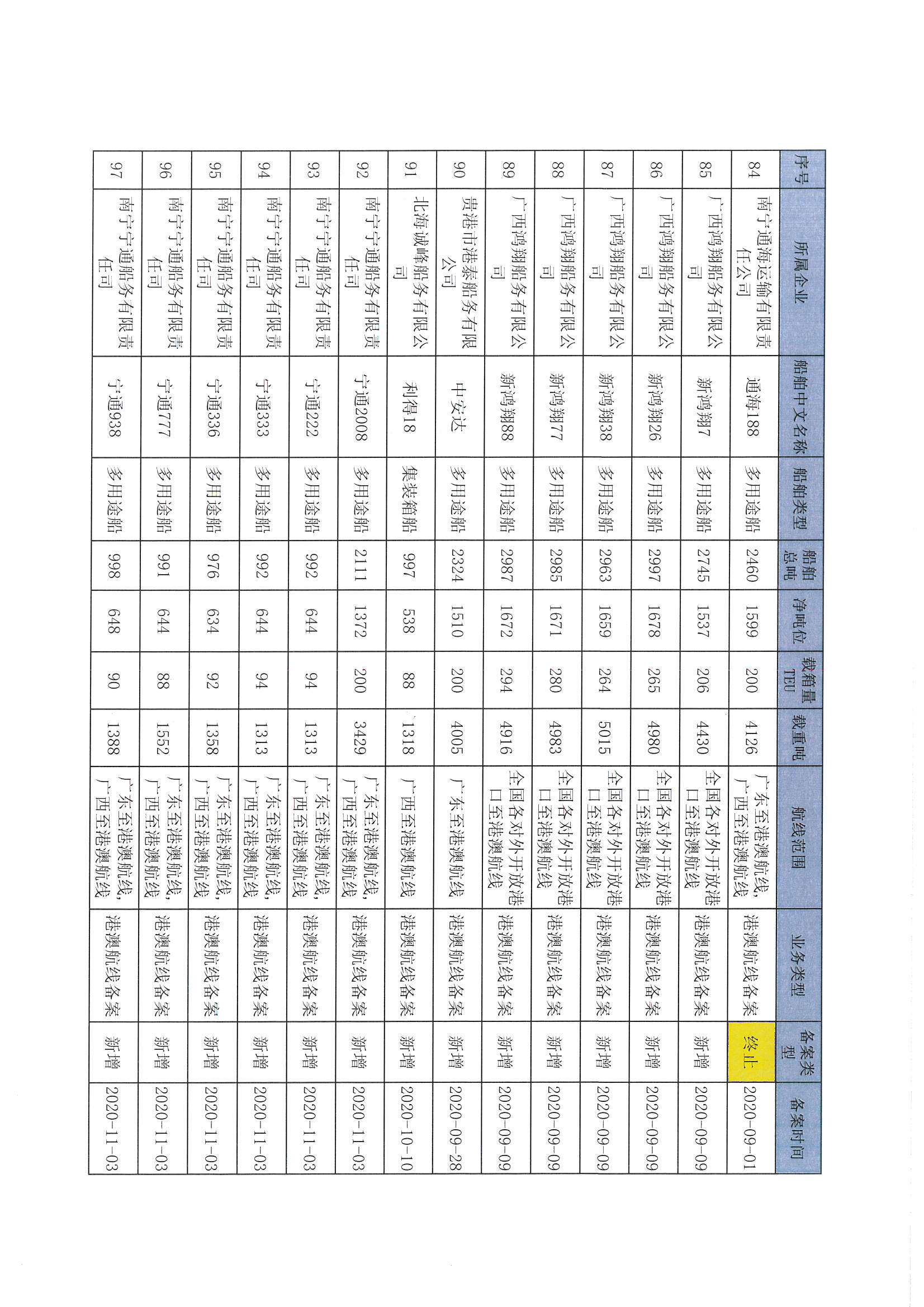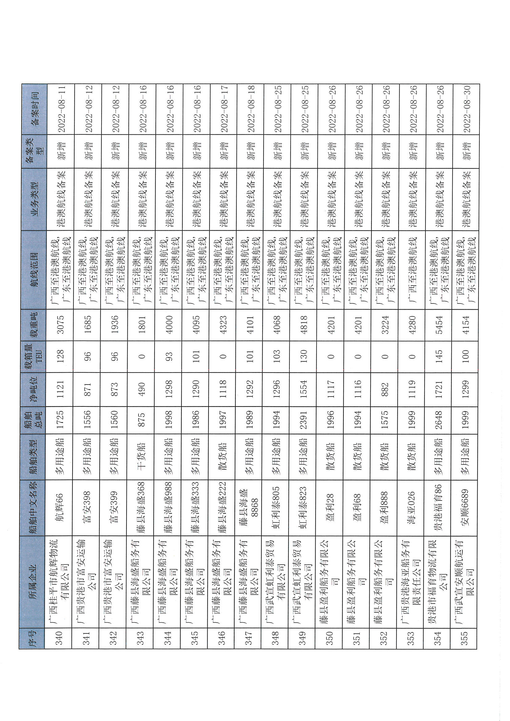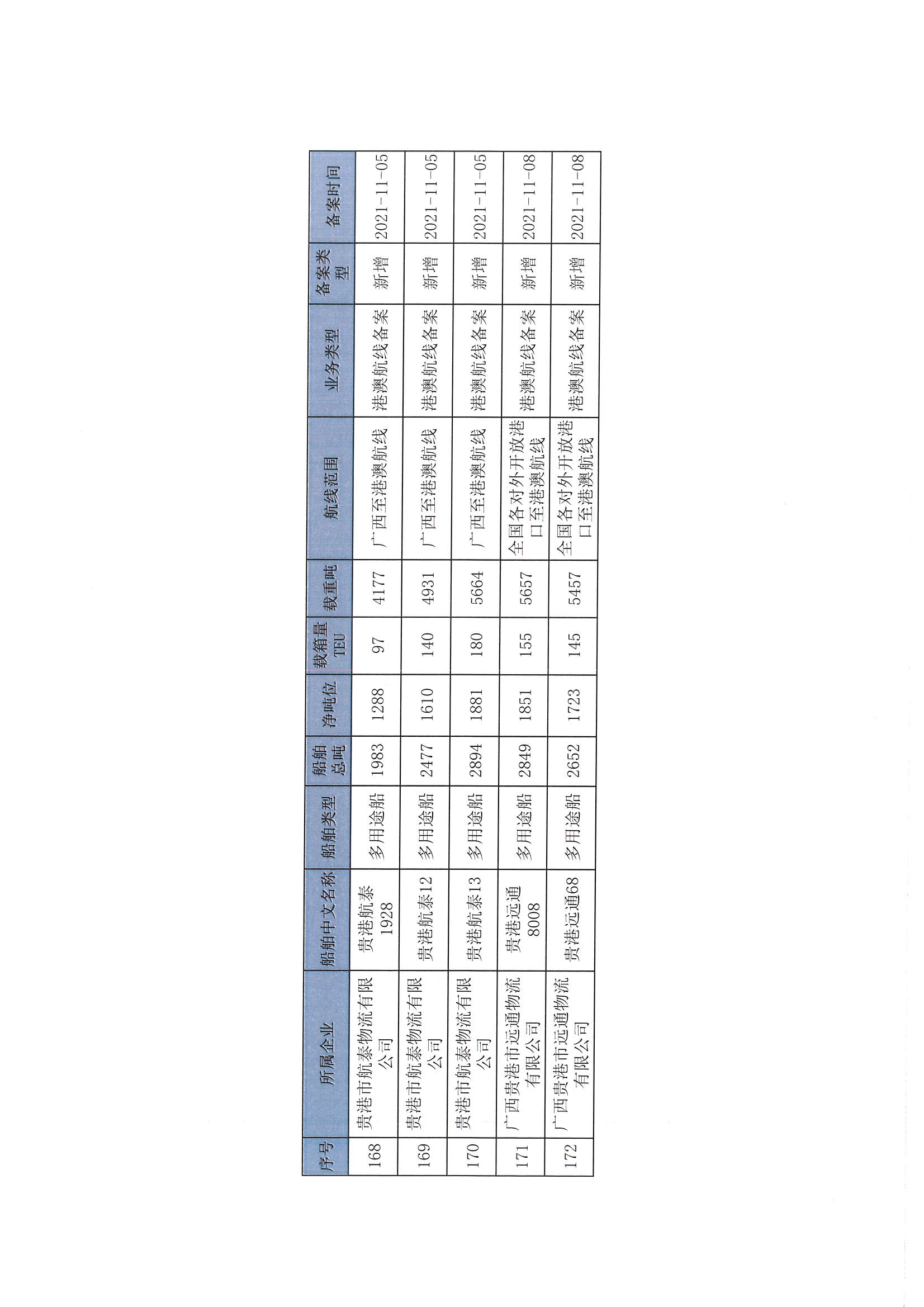 截至2022年12月11日在91porn部水路运输建设综合管理信息系统完成备案的港澳航线水路运输船舶