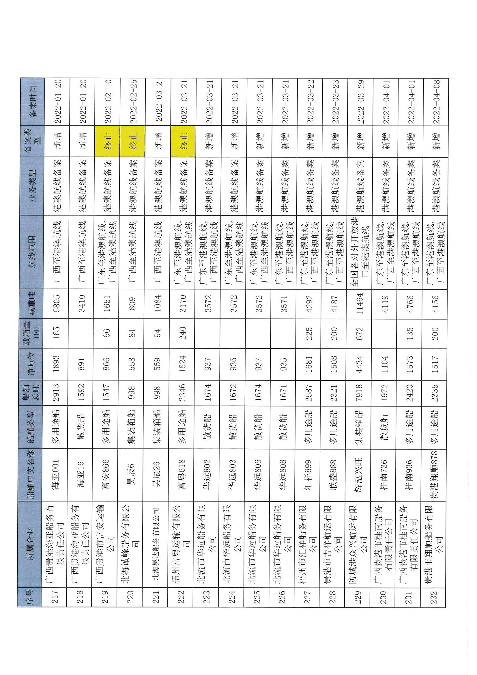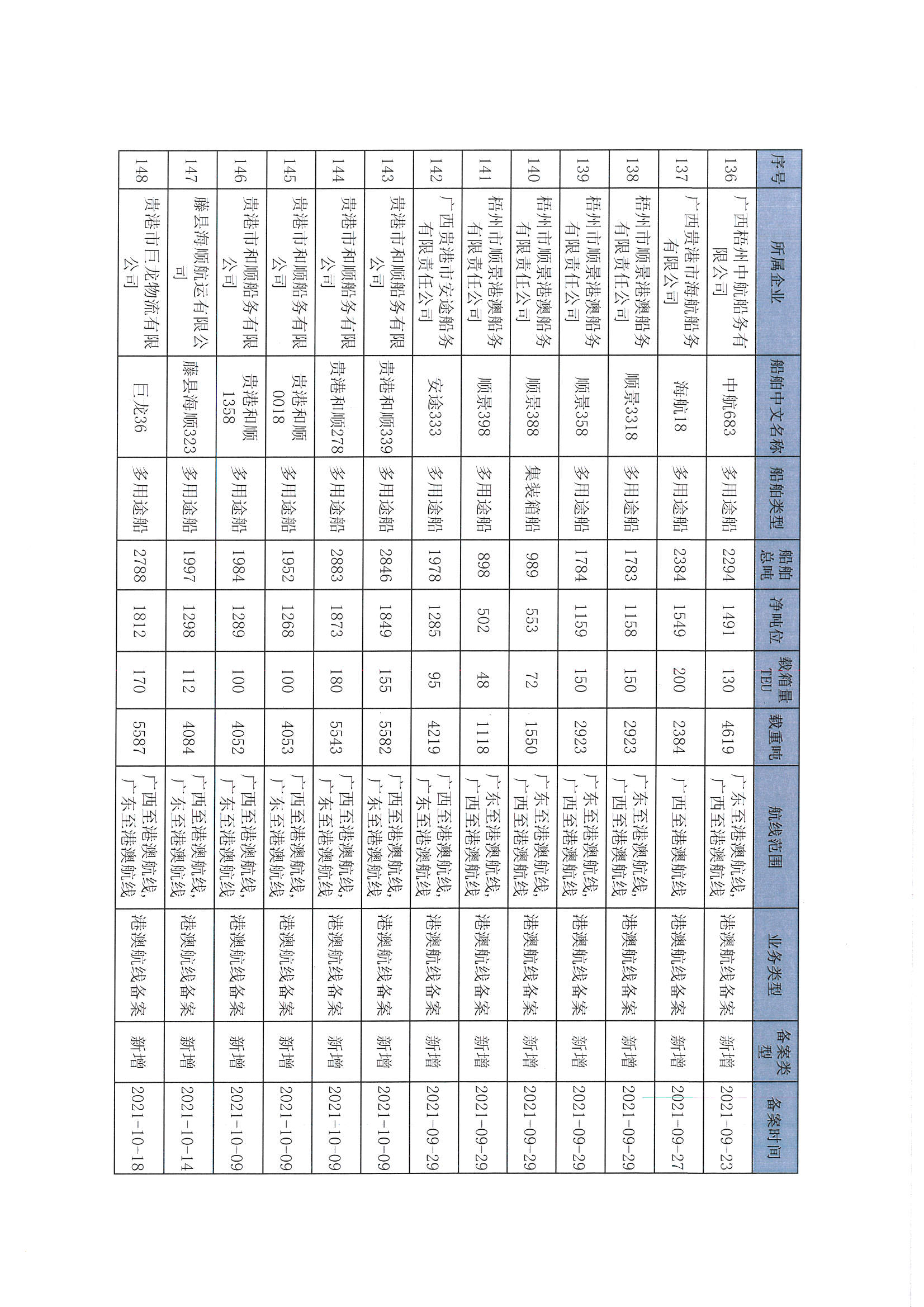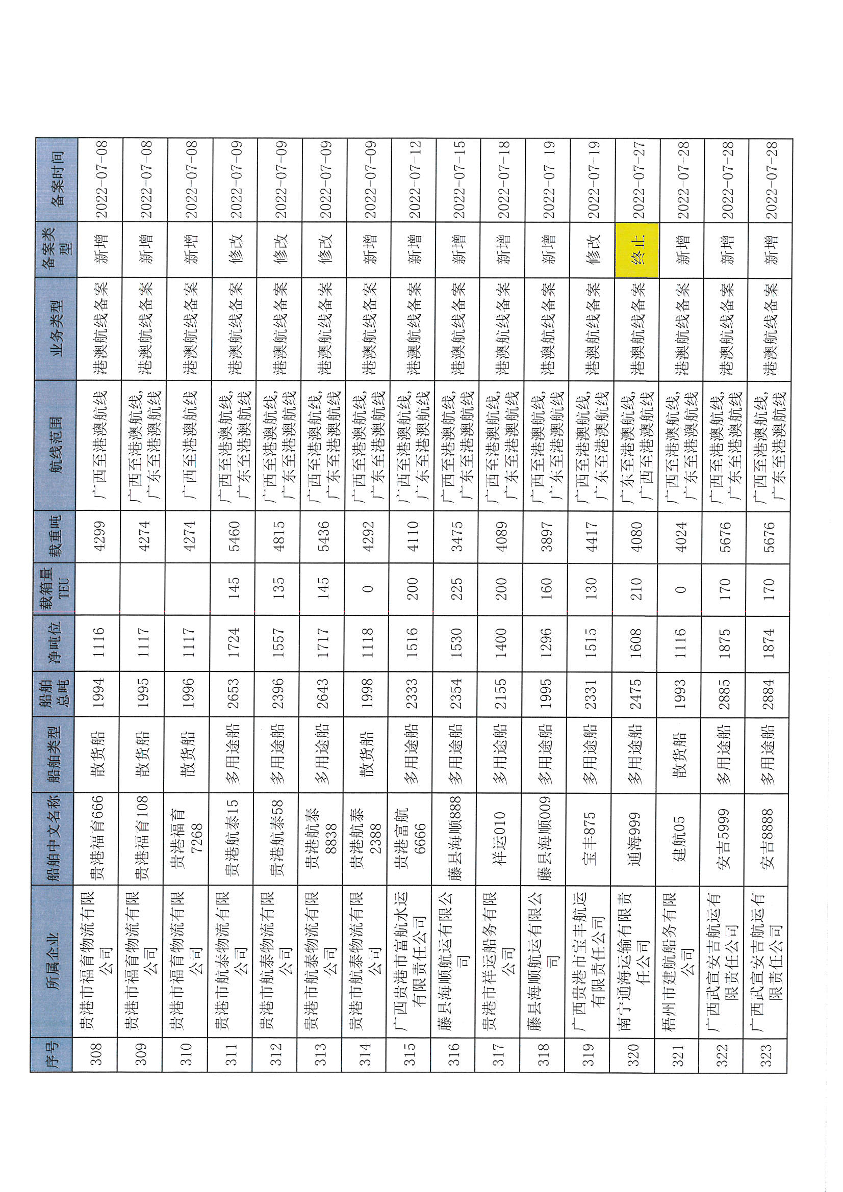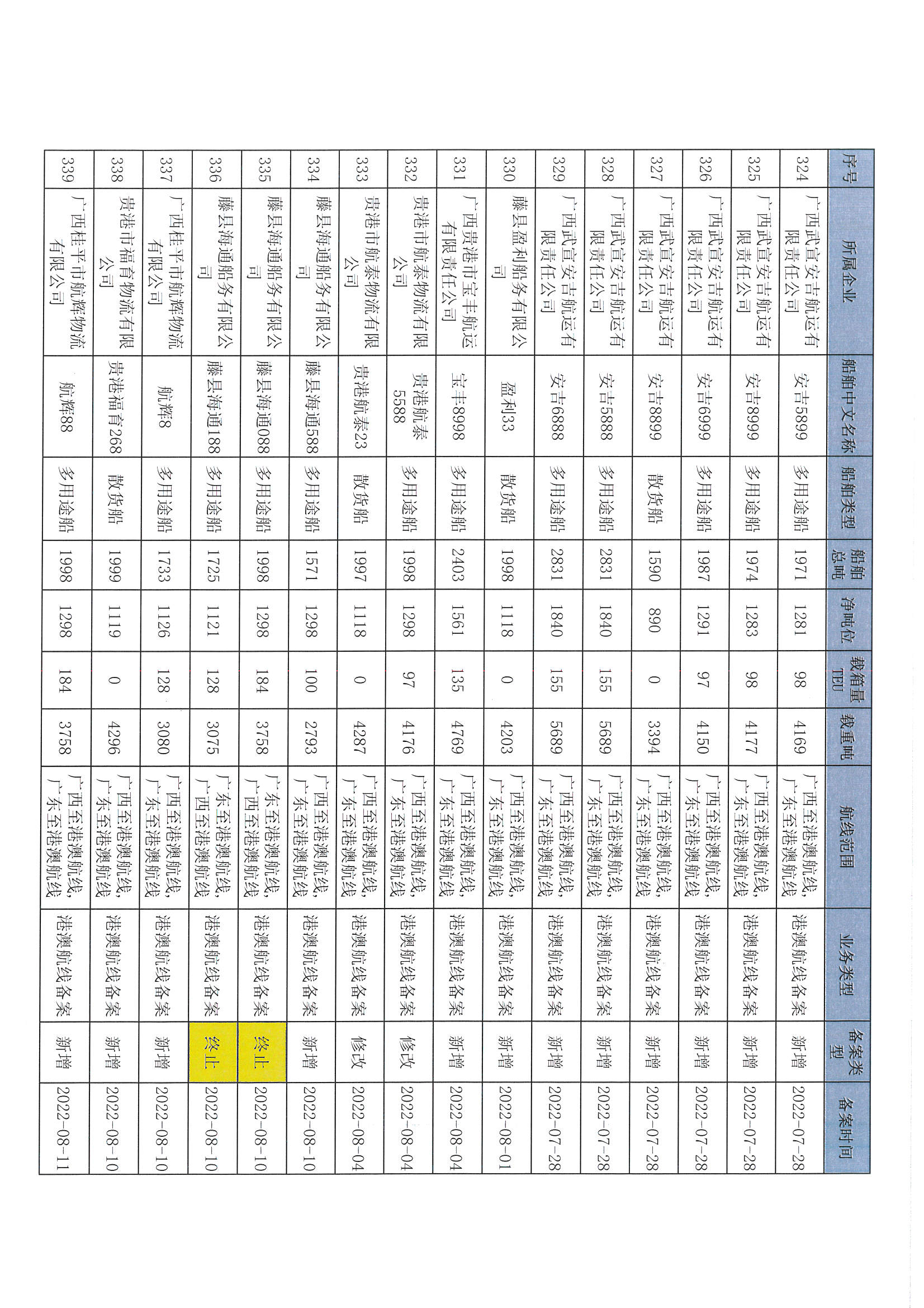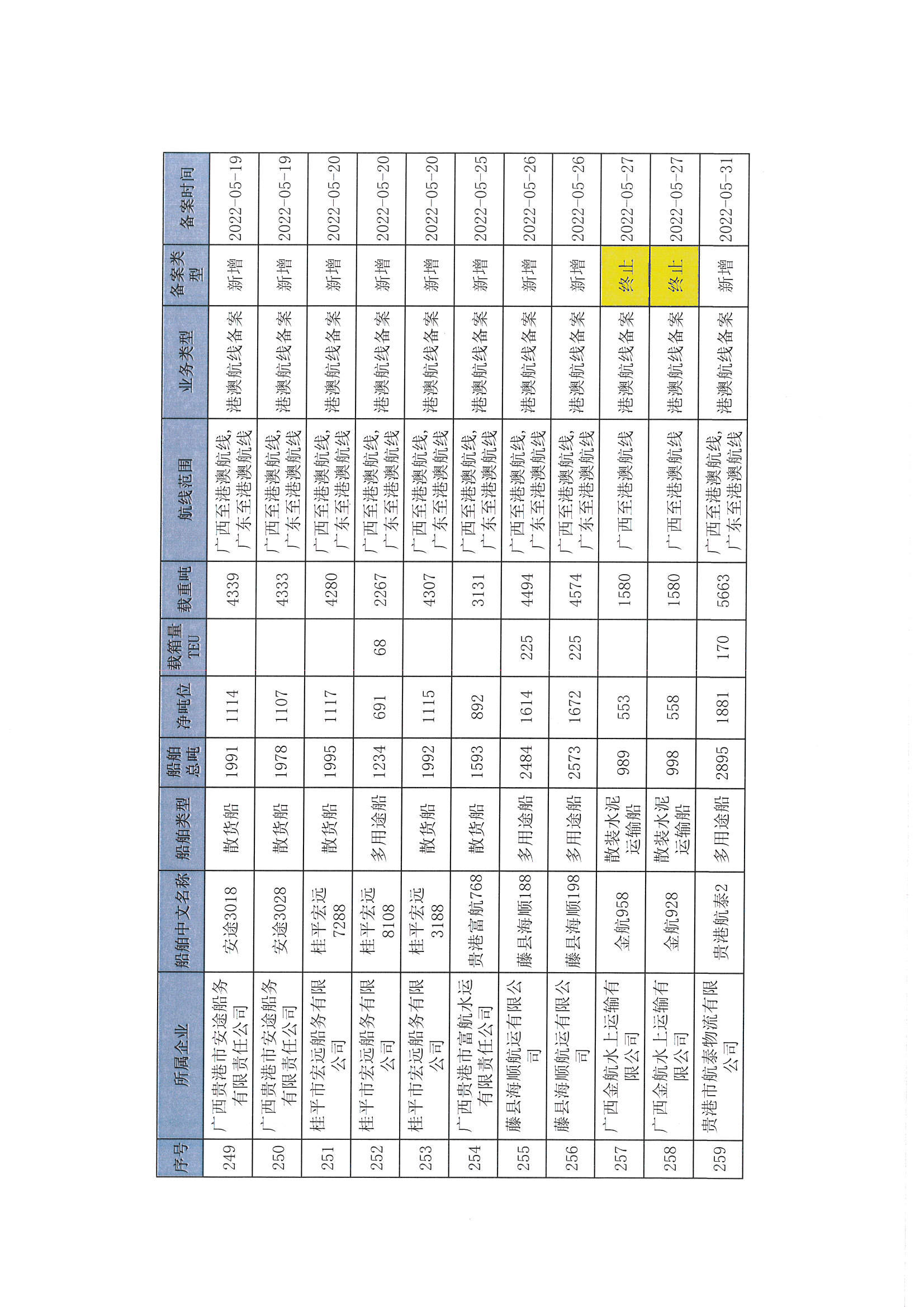 截至2022年12月11日在91porn部水路运输建设综合管理信息系统完成备案的港澳航线水路运输船舶