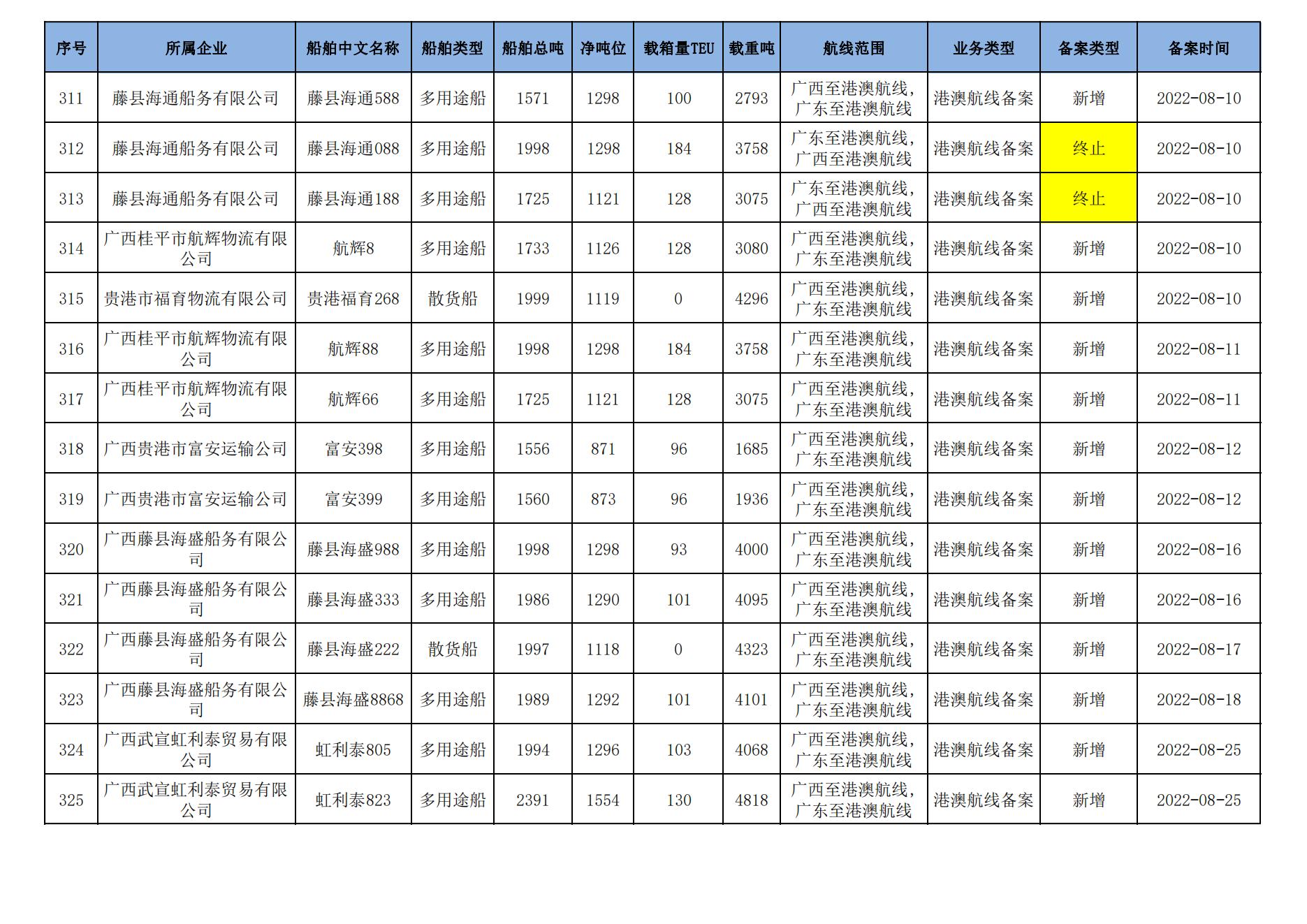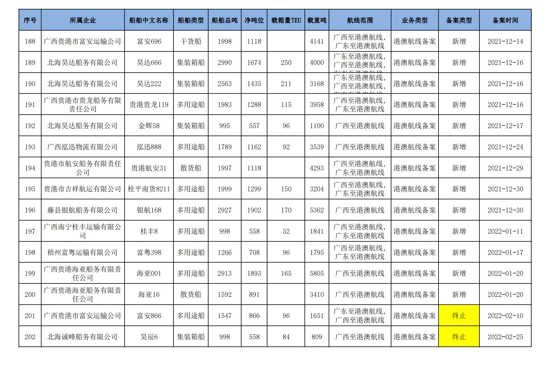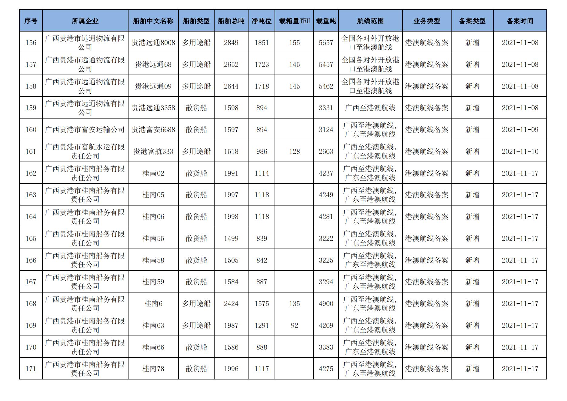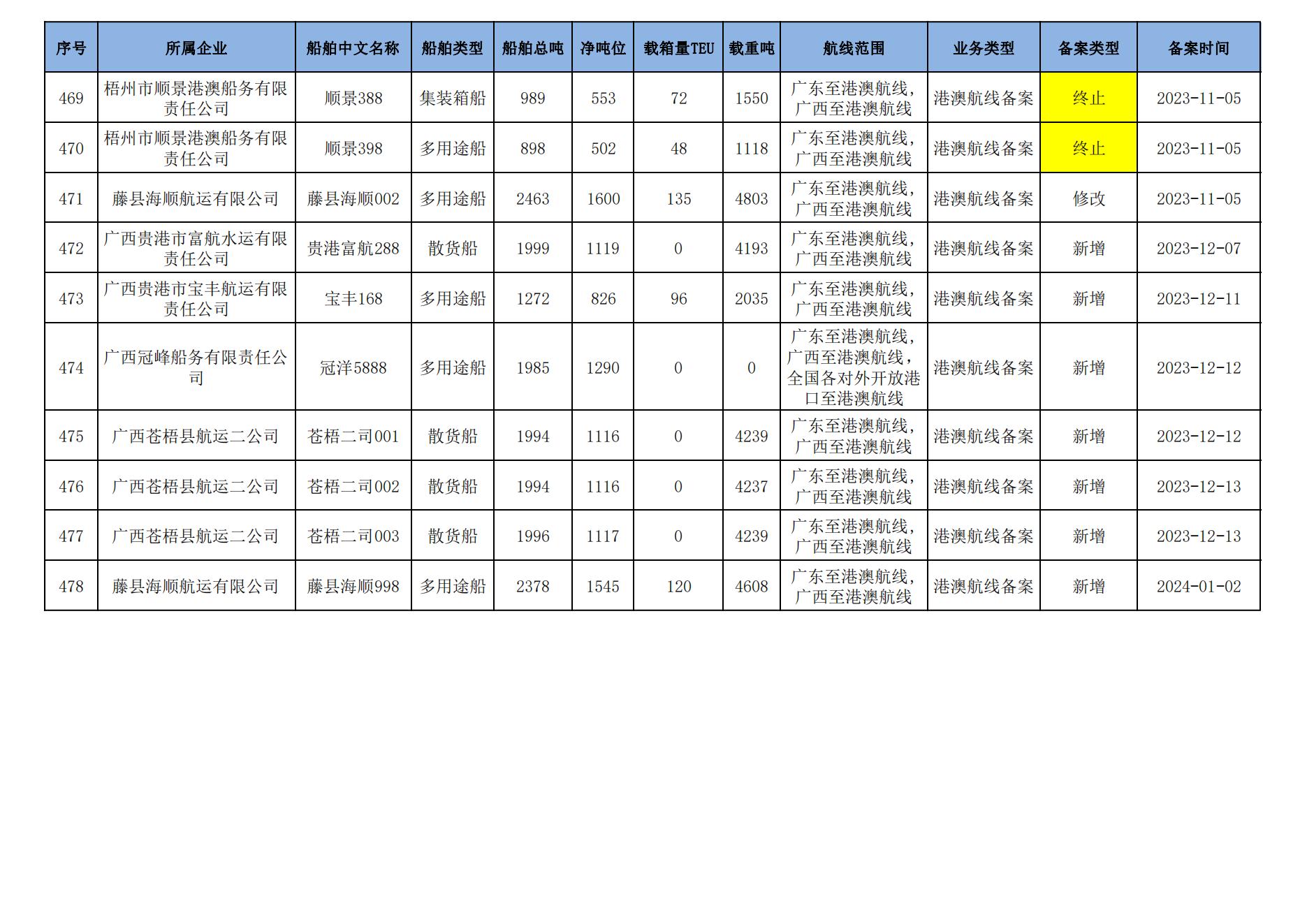 截至2024年1月11日在91porn部水路运输建设综合管理信息系统完成备案的港澳航线水路运输船舶