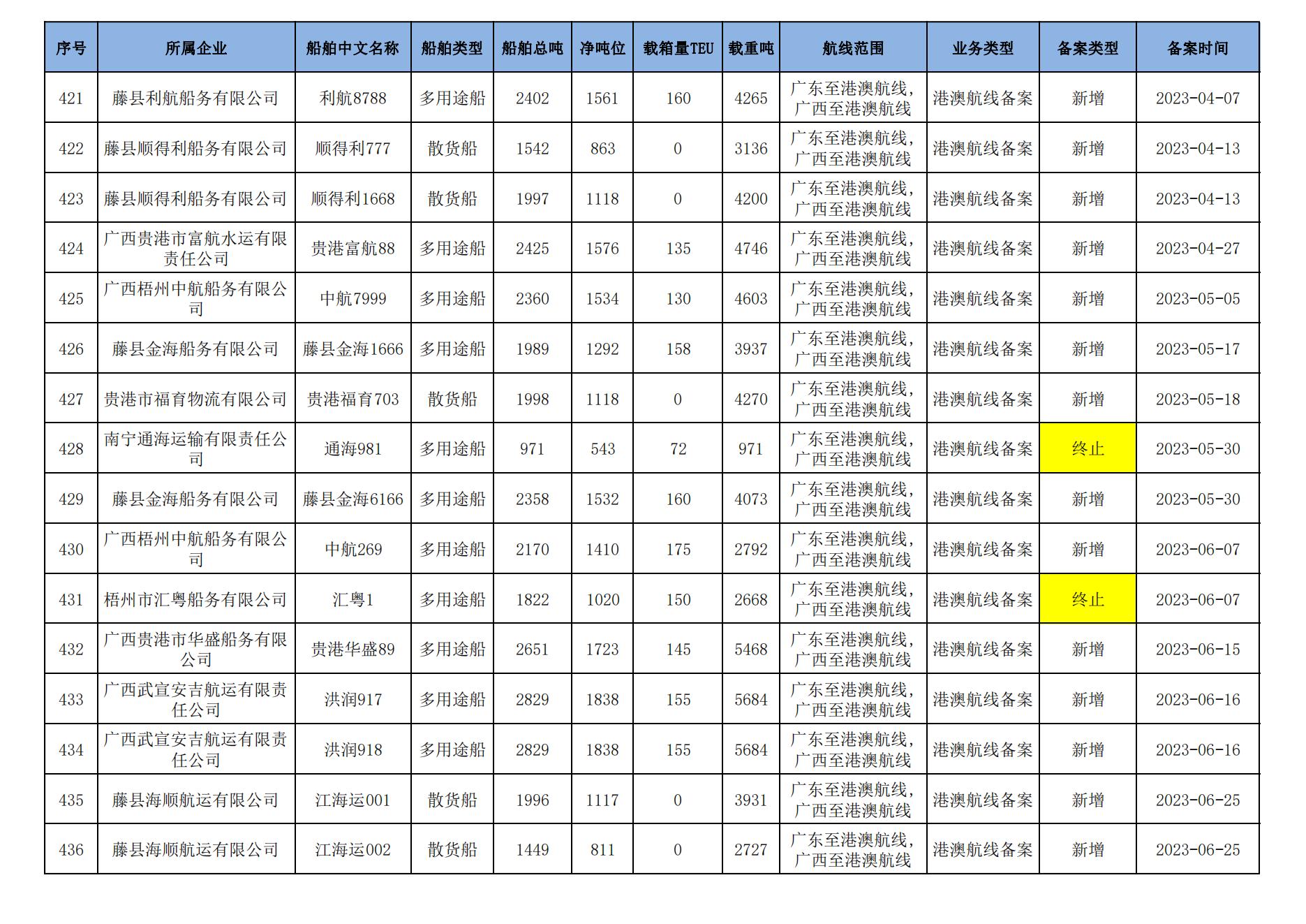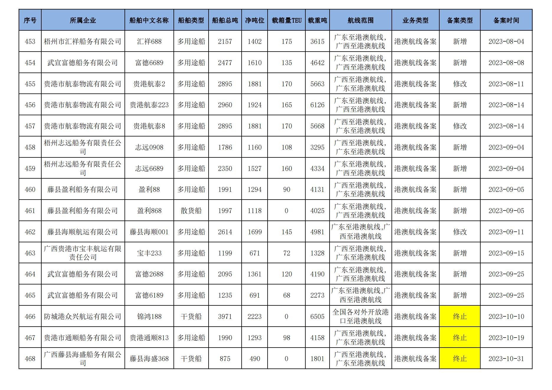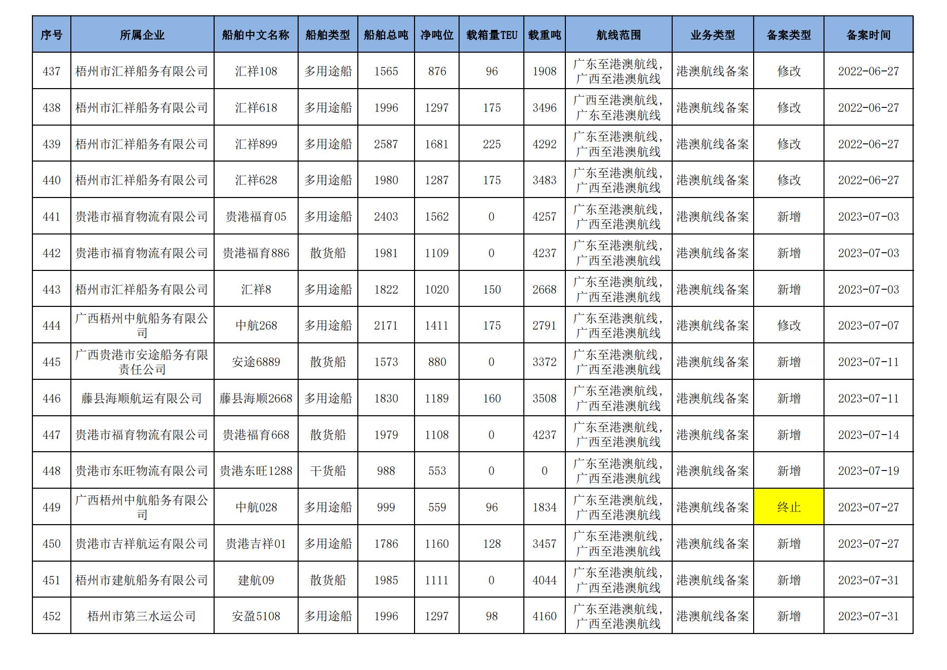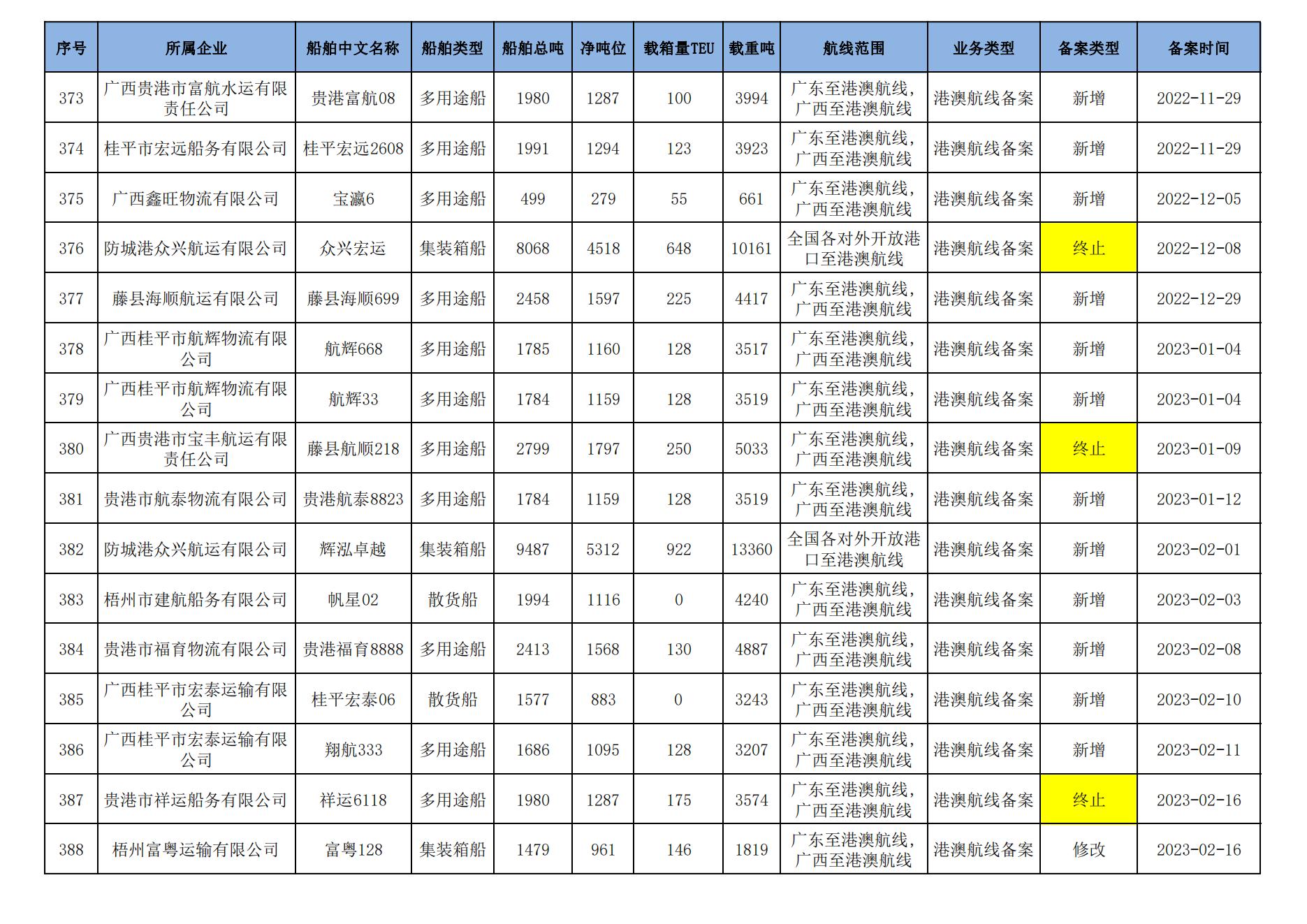 截至2024年1月11日在91porn部水路运输建设综合管理信息系统完成备案的港澳航线水路运输船舶