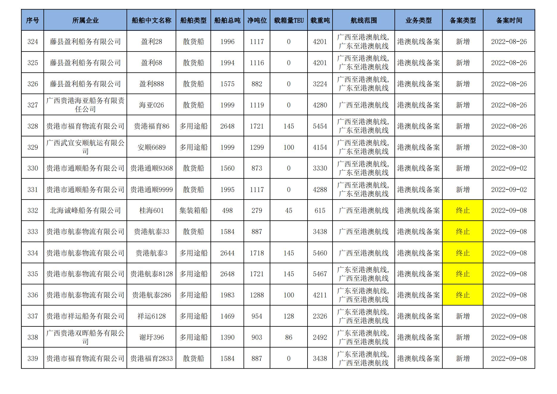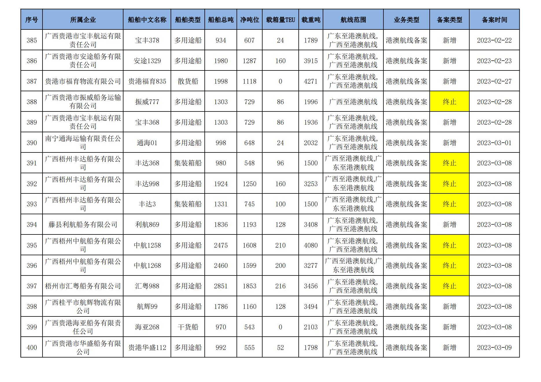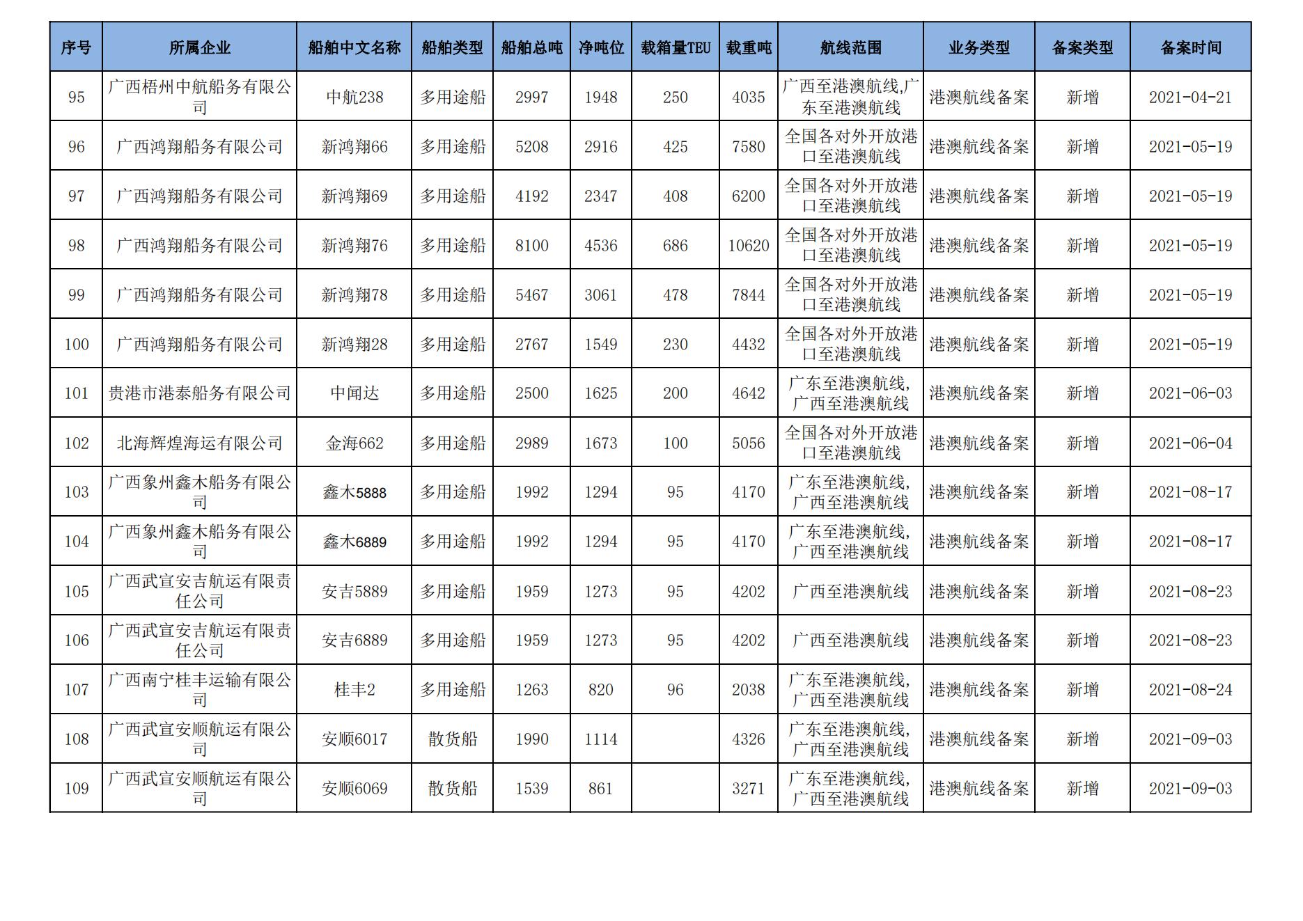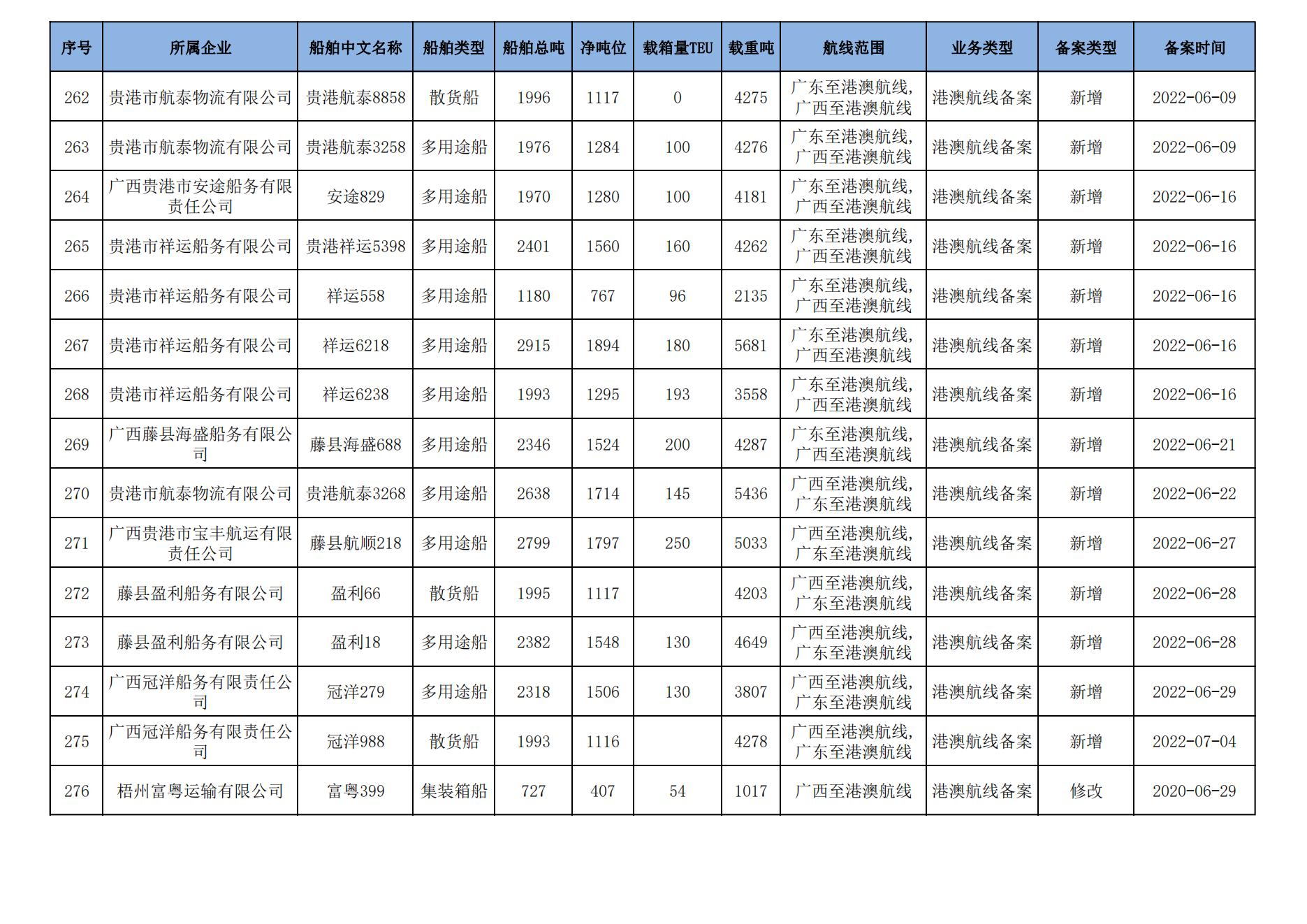 截至2024年4月11日在91porn部水路运输建设综合管理信息系统完成备案的港澳航线水路运输船舶