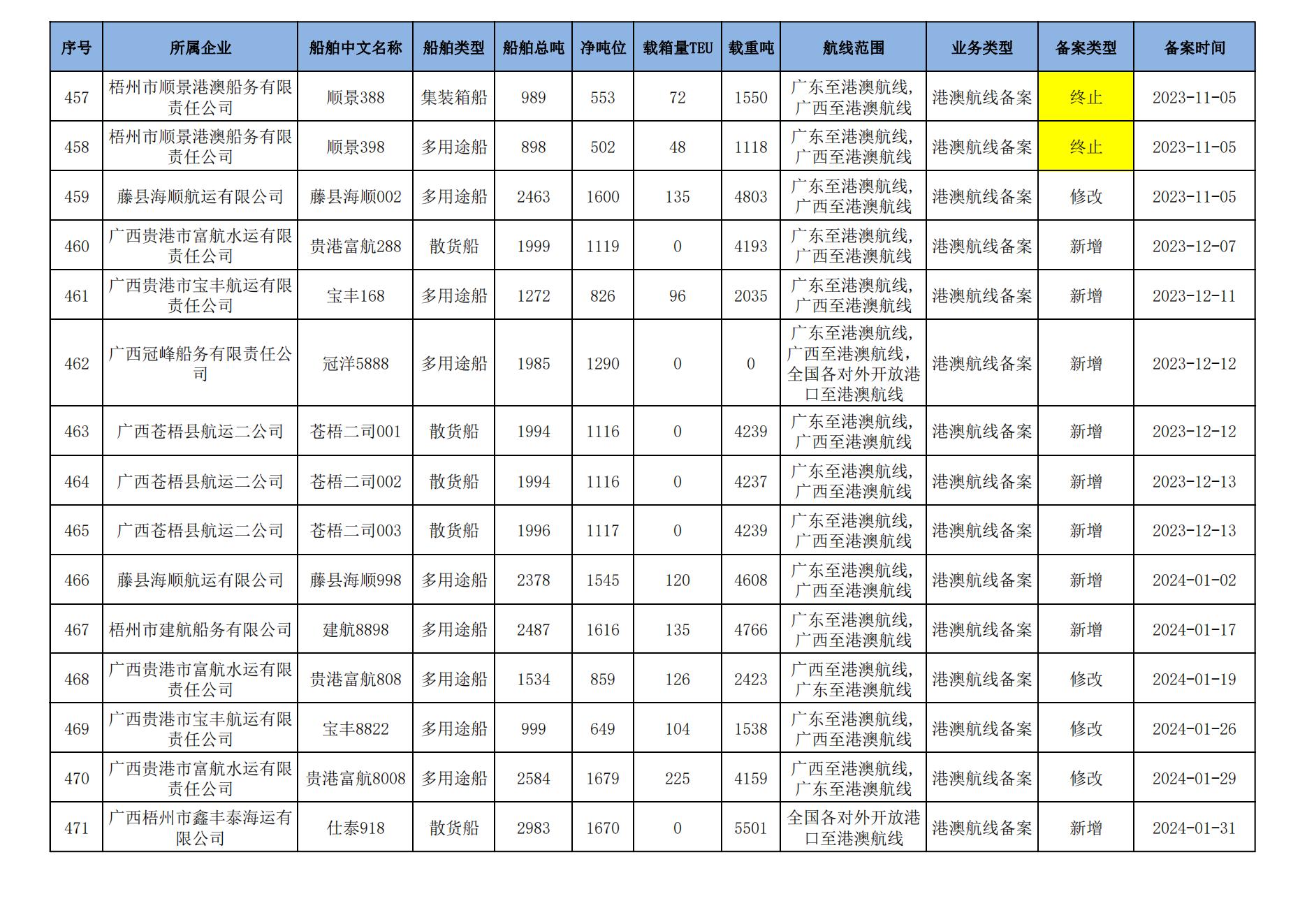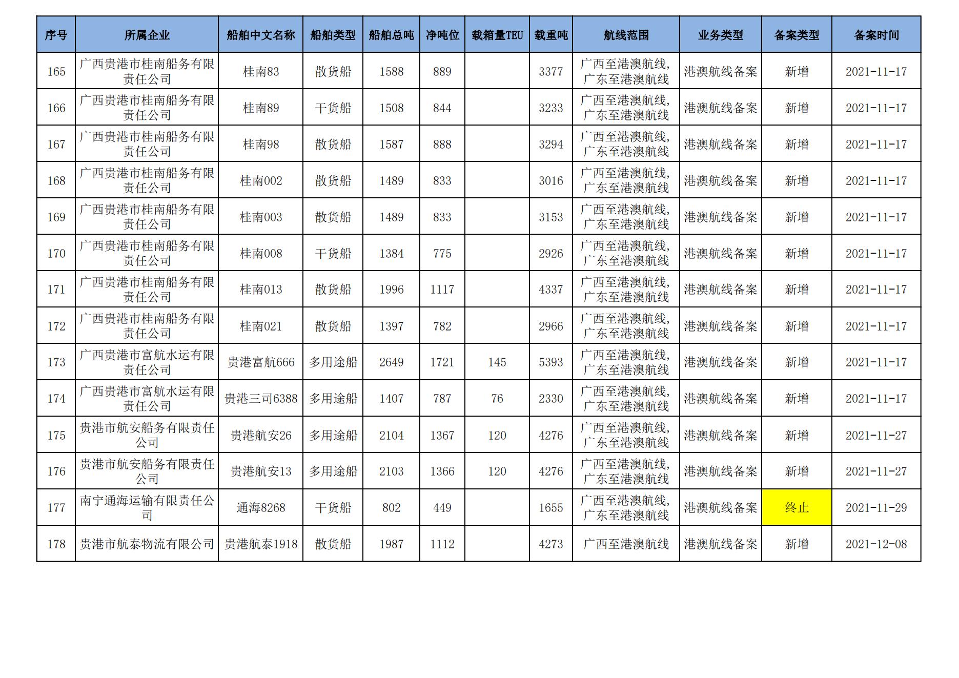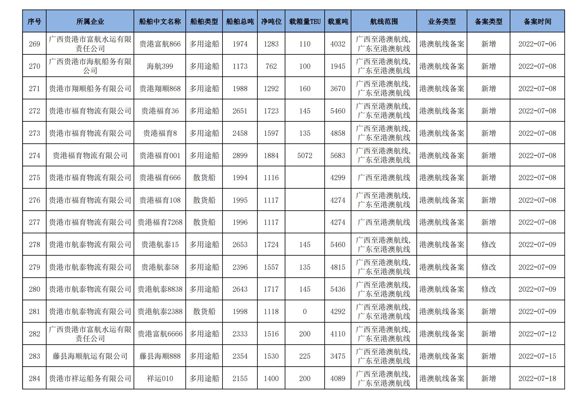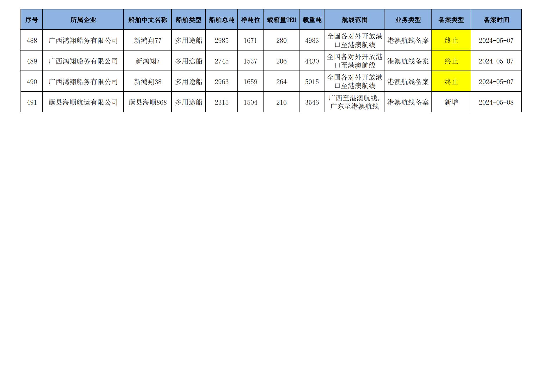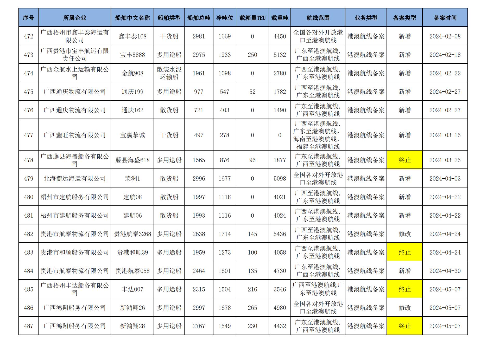 截至2024年5月11日在91porn部水路运输建设综合管理信息系统完成备案的港澳航线水路运输船舶