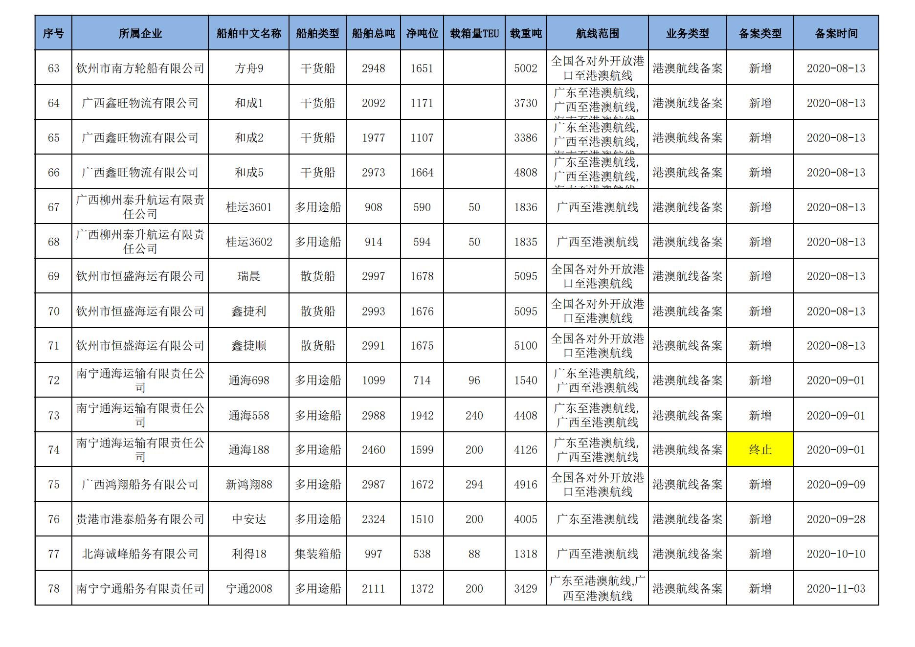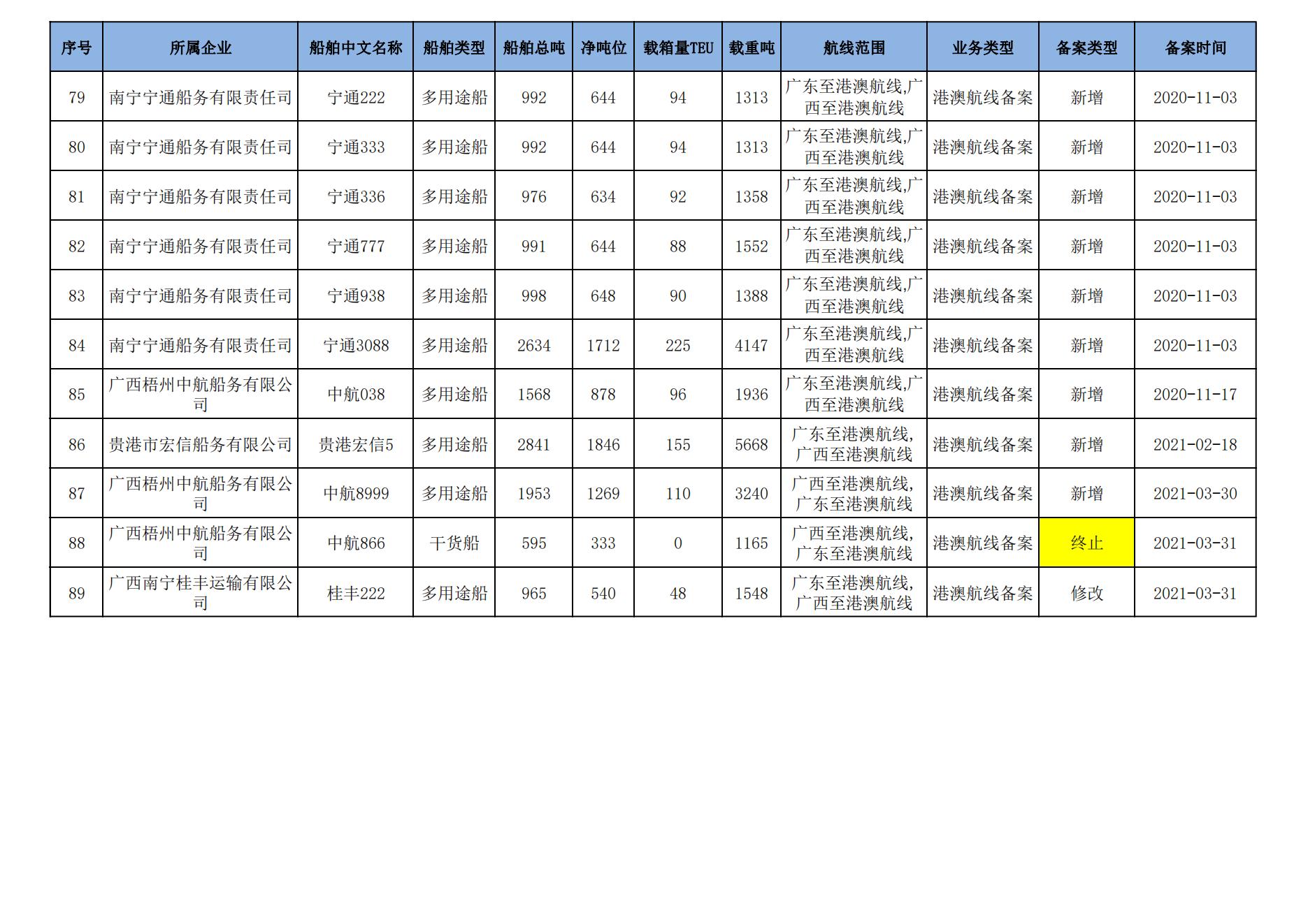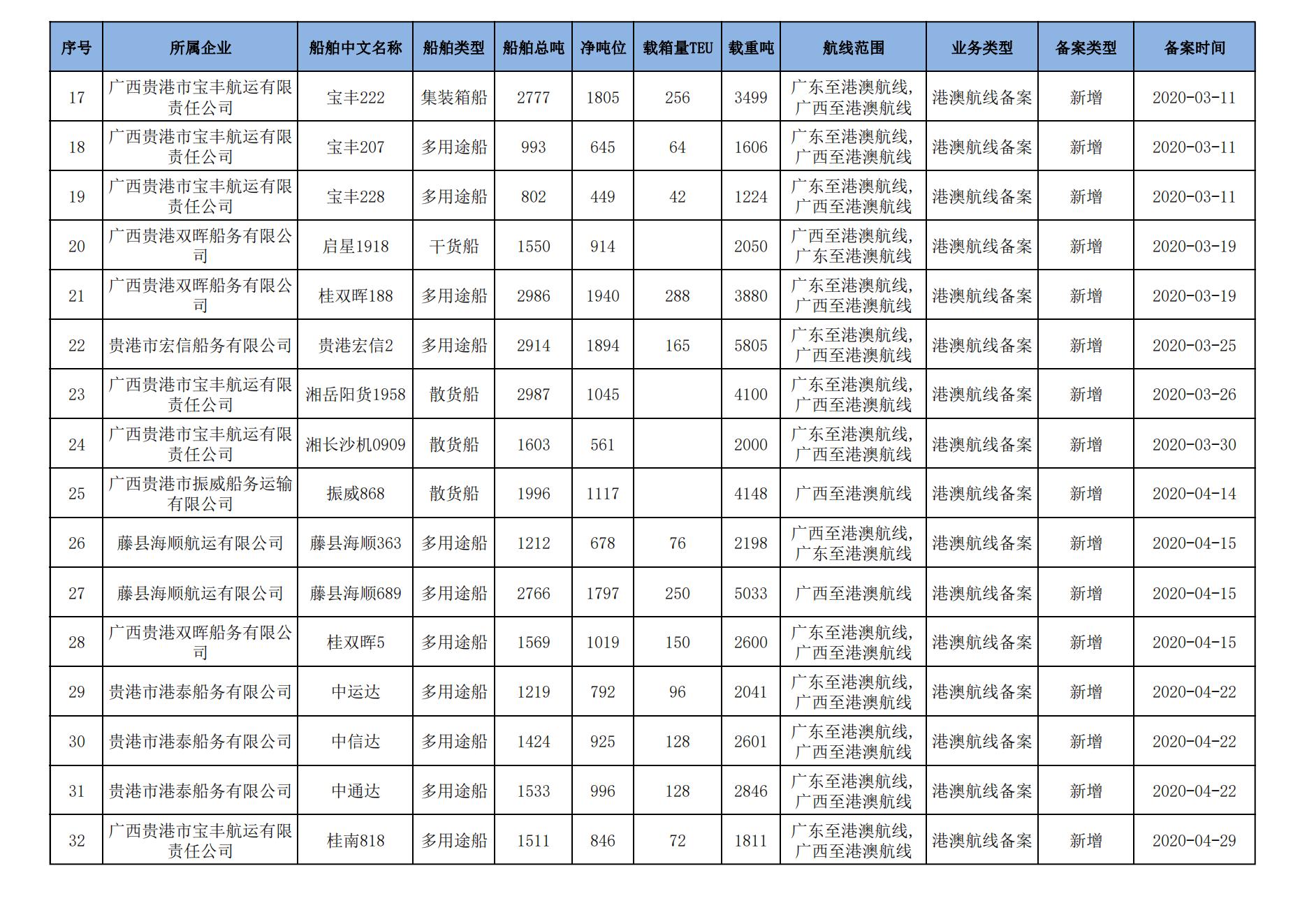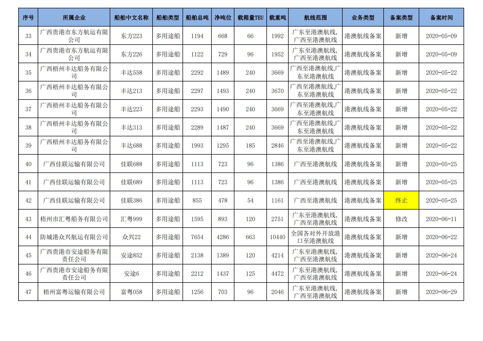 截至2024年5月11日在91porn部水路运输建设综合管理信息系统完成备案的港澳航线水路运输船舶