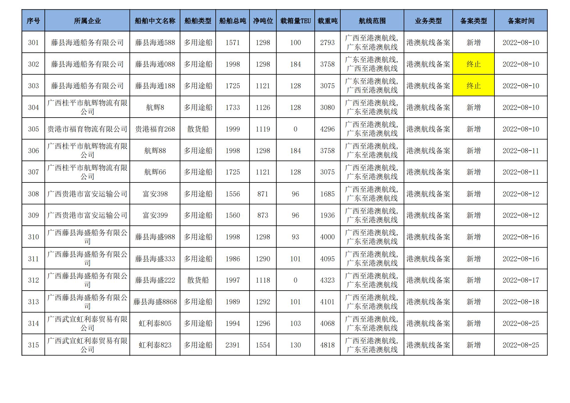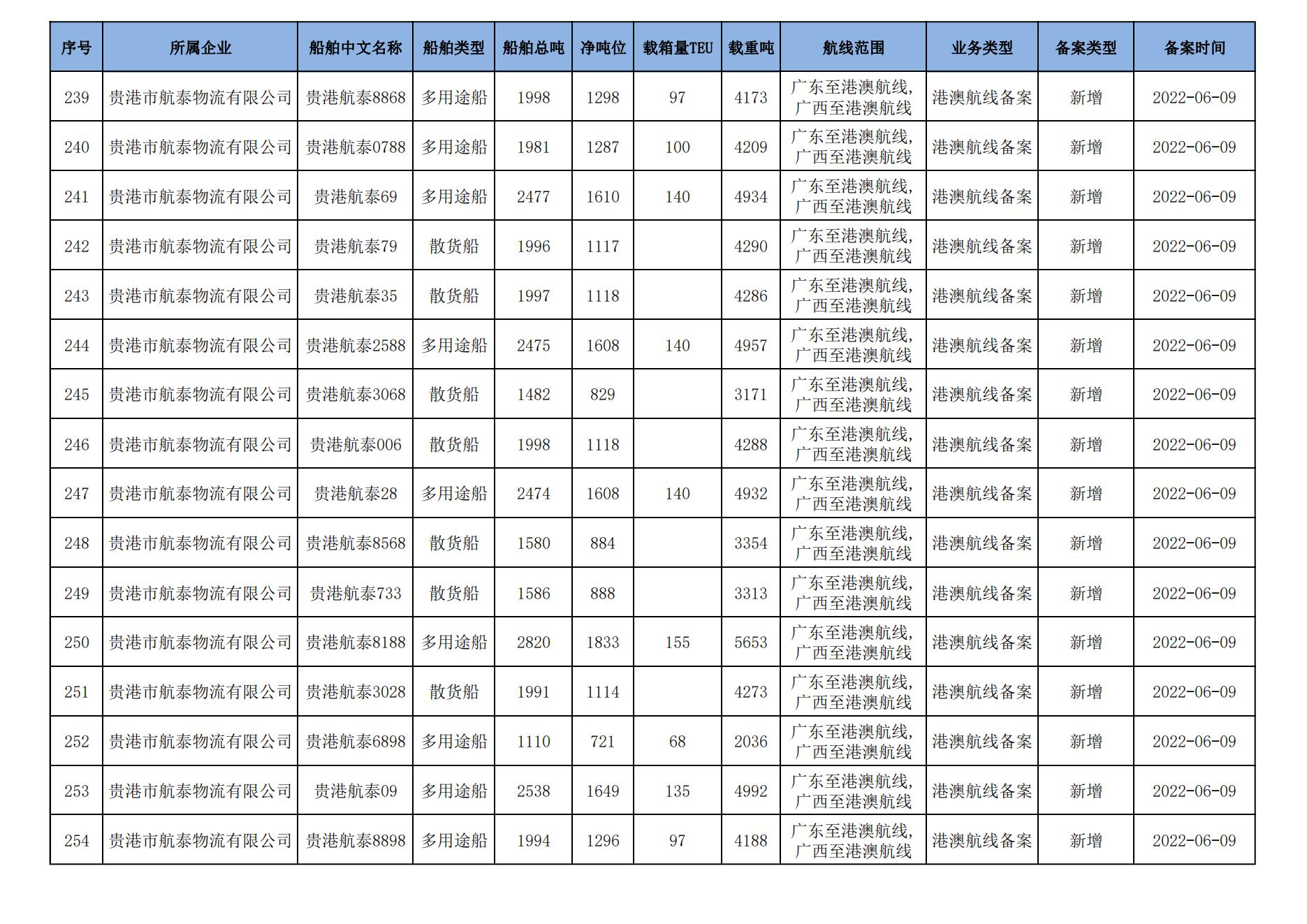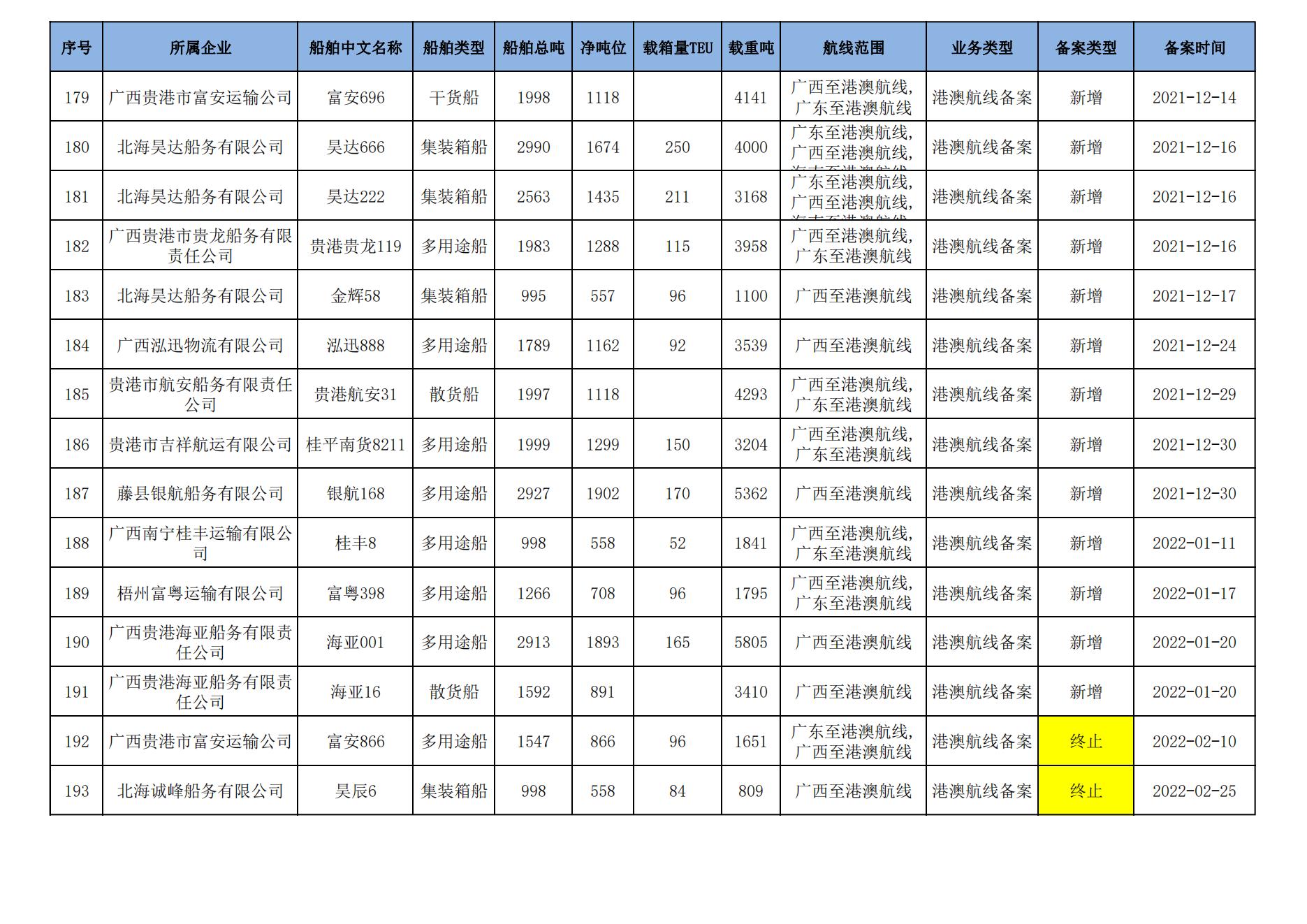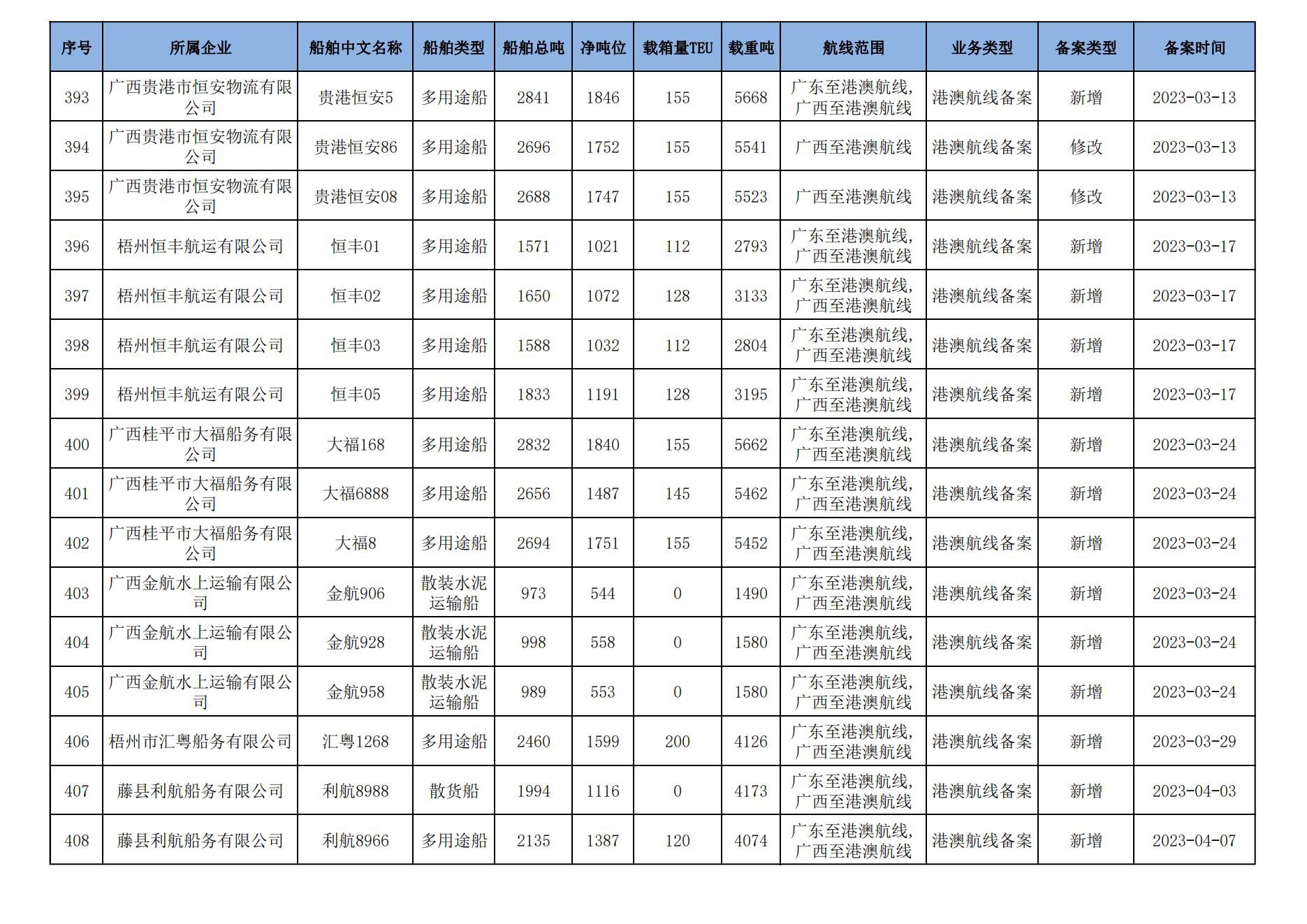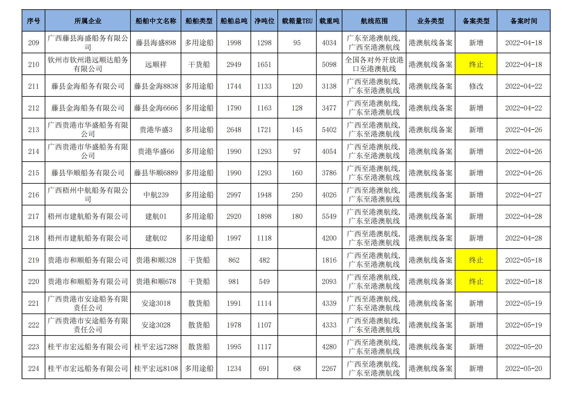 截至2024年5月11日在91porn部水路运输建设综合管理信息系统完成备案的港澳航线水路运输船舶