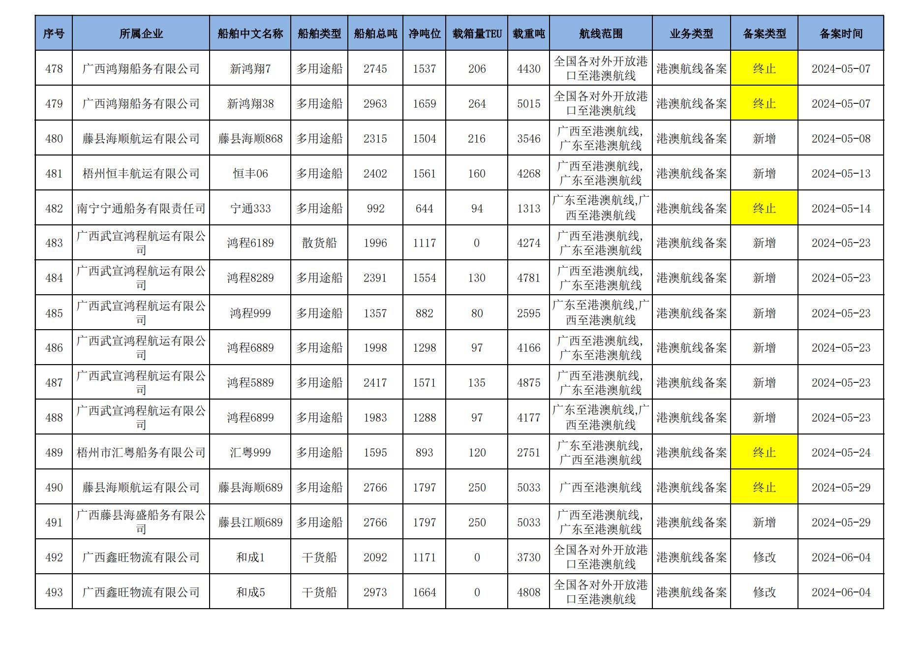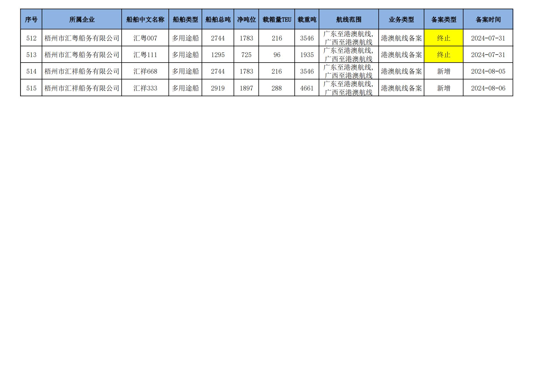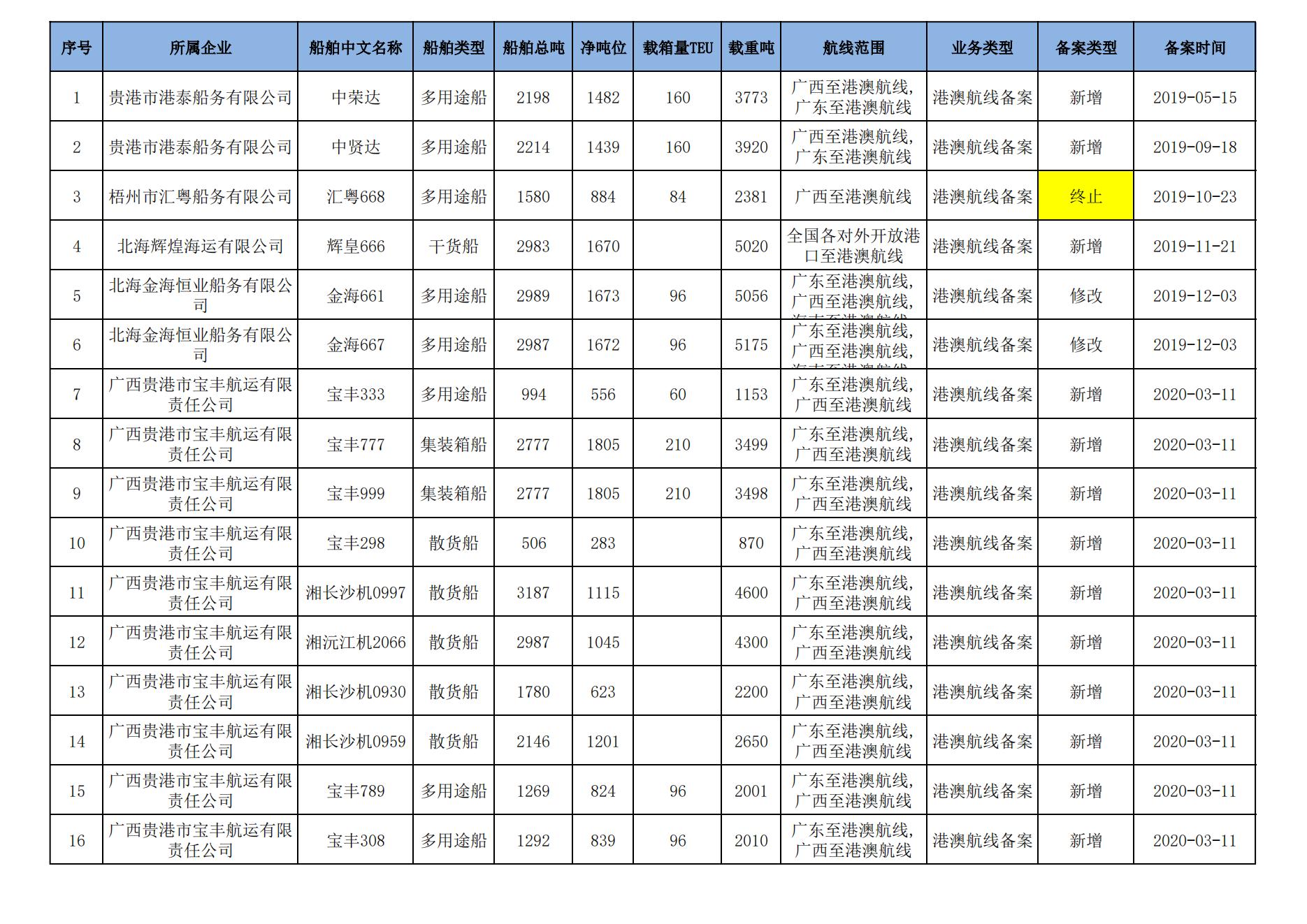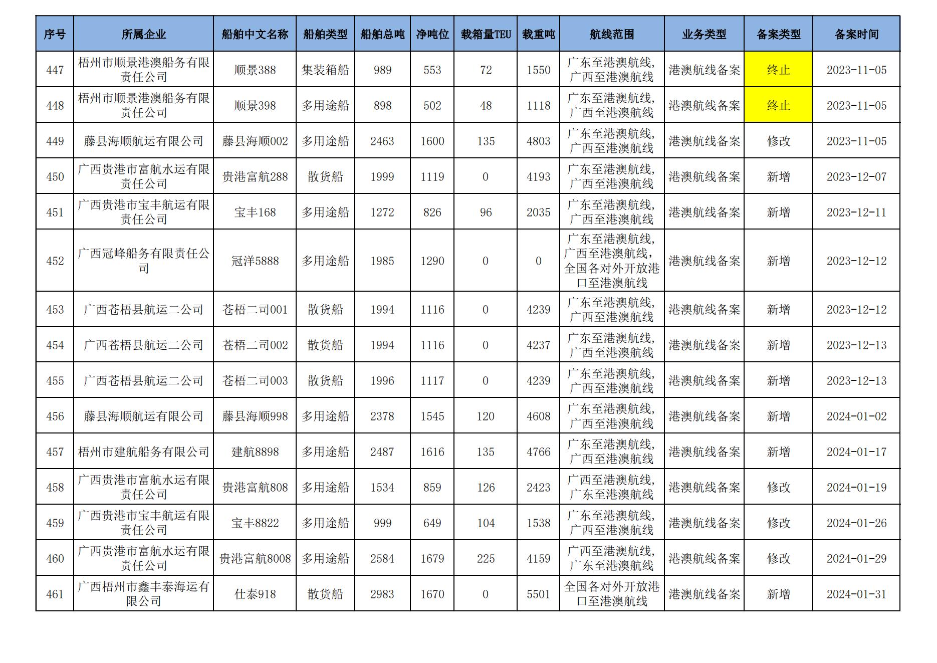 截至2024年8月11日在91porn部水路运输建设综合管理信息系统完成备案的港澳航线水路运输船舶