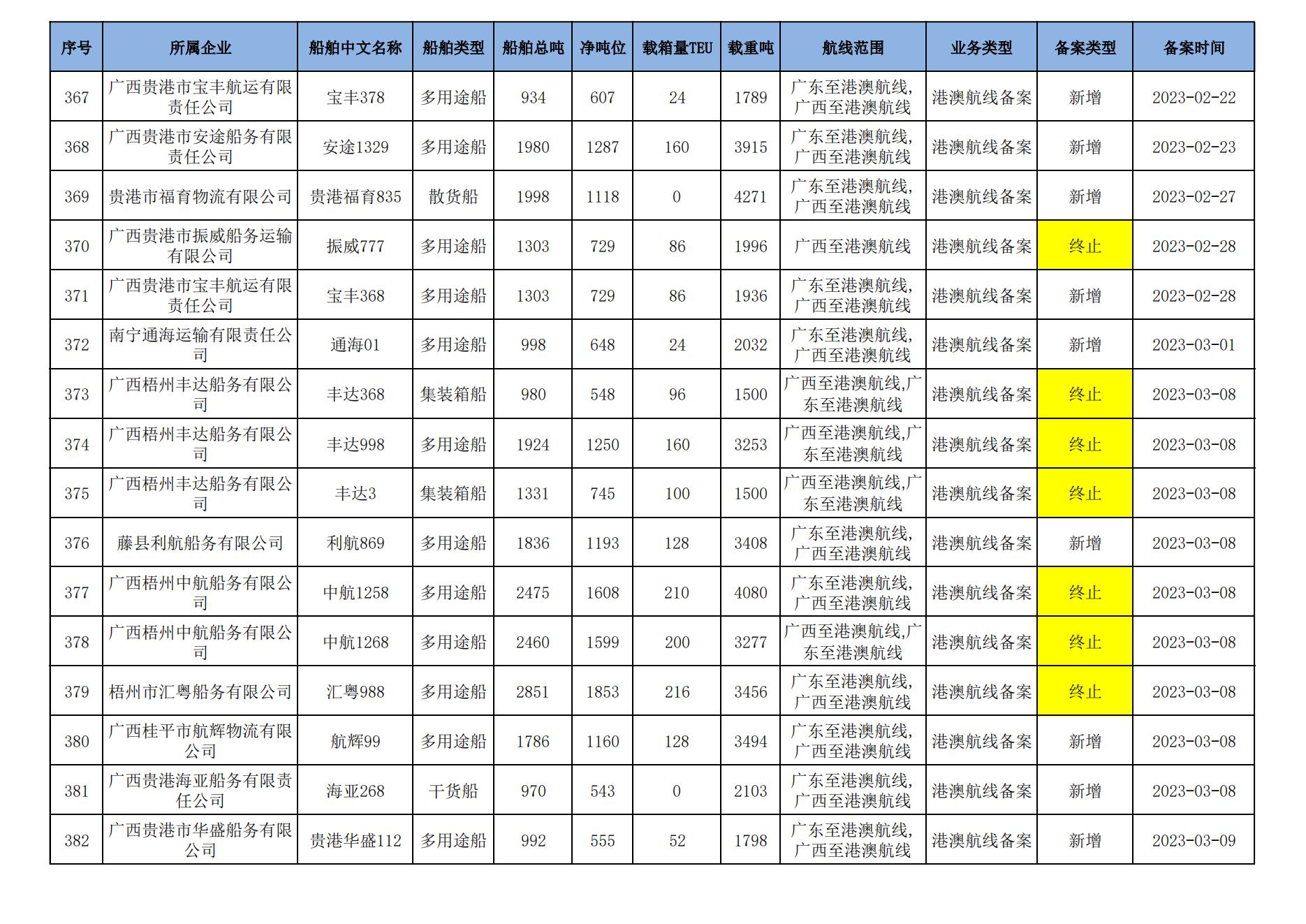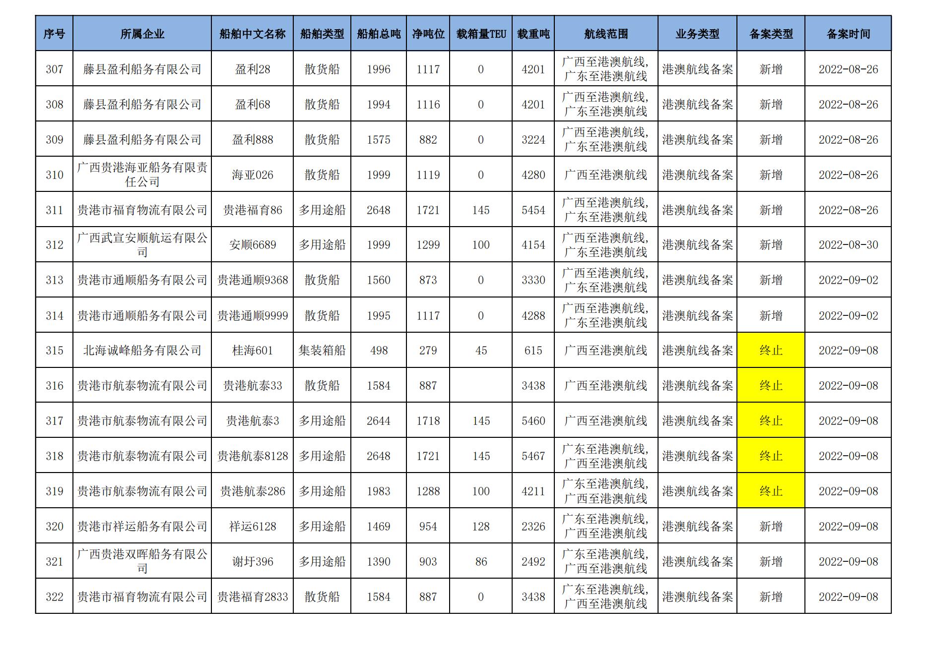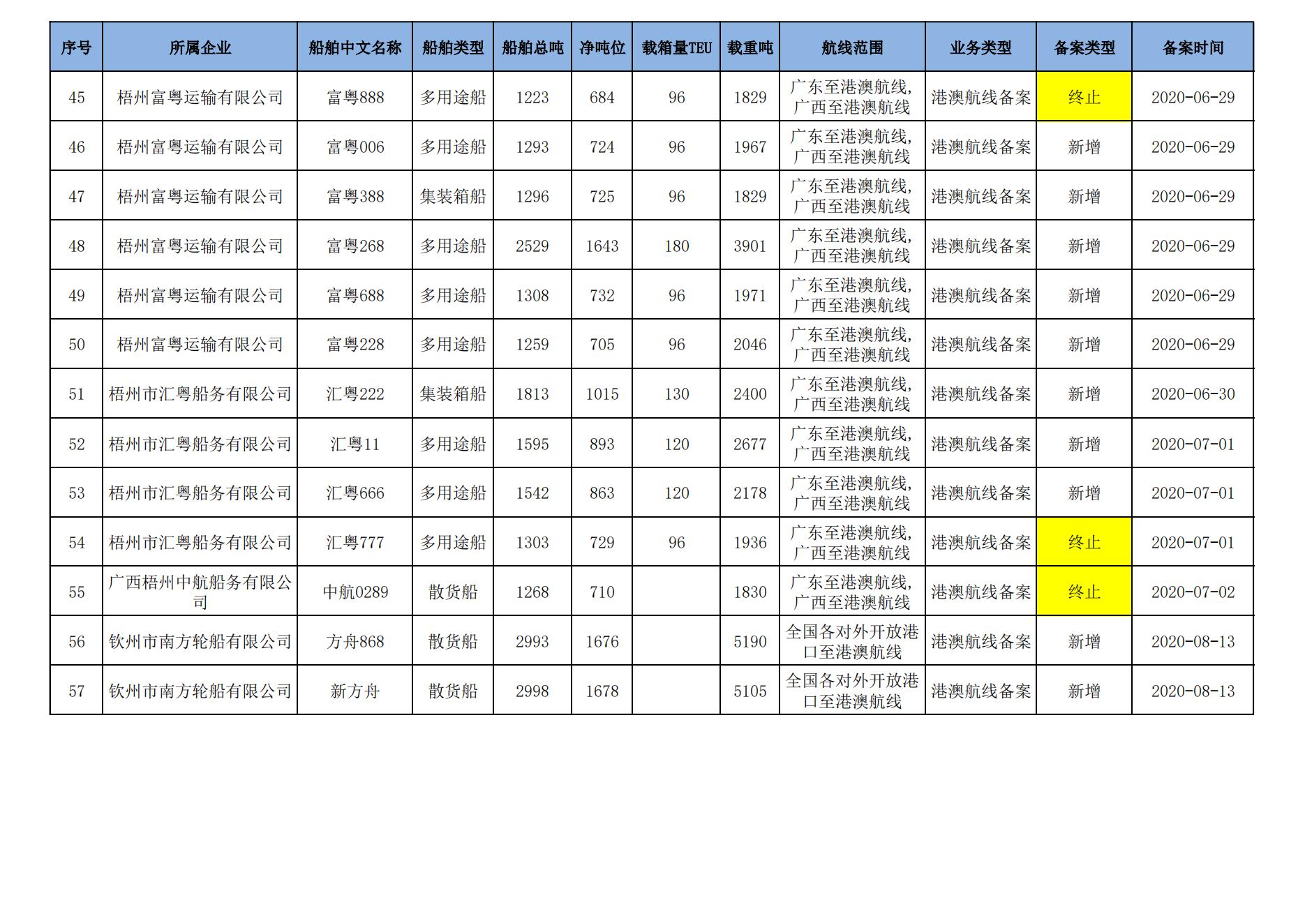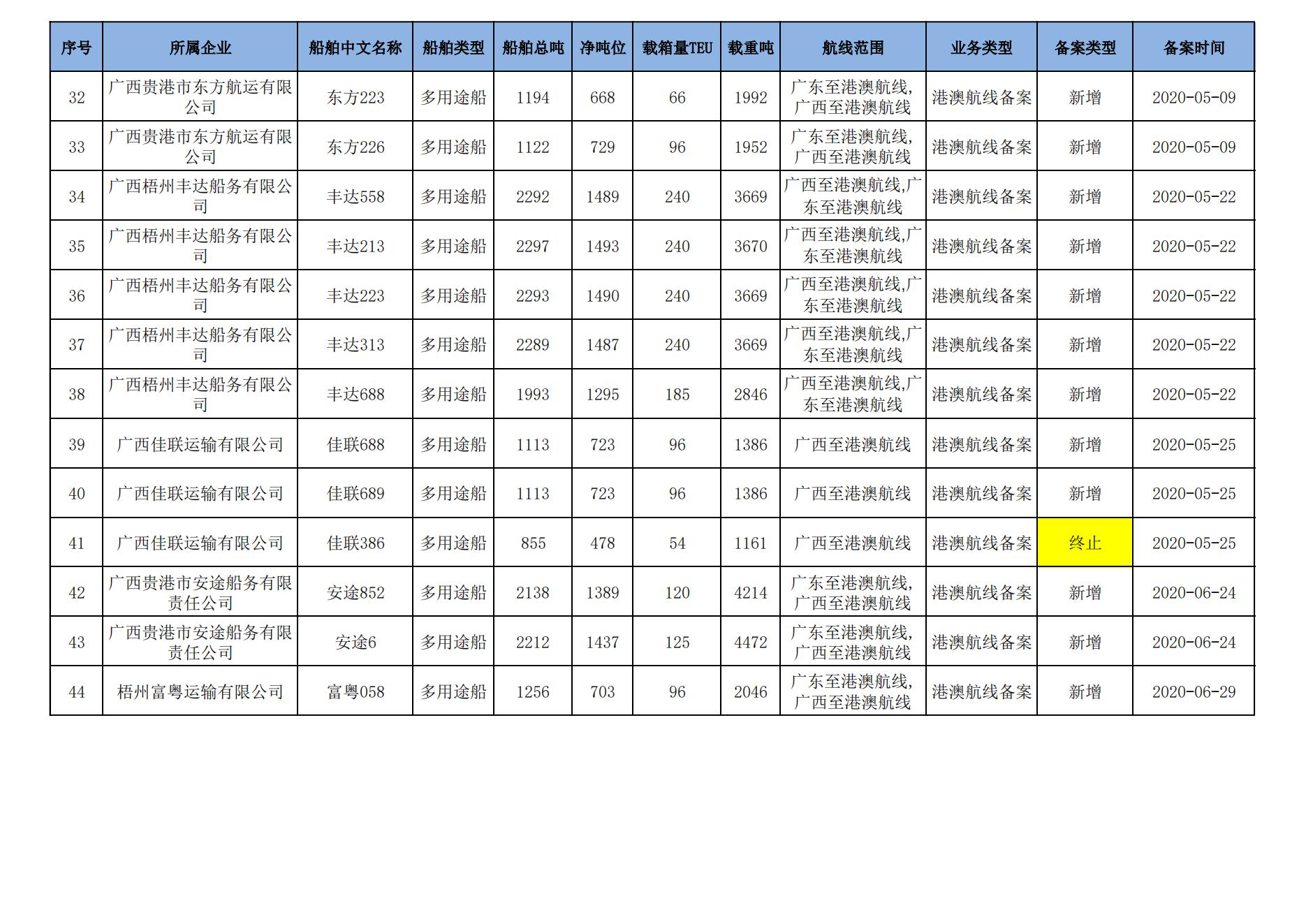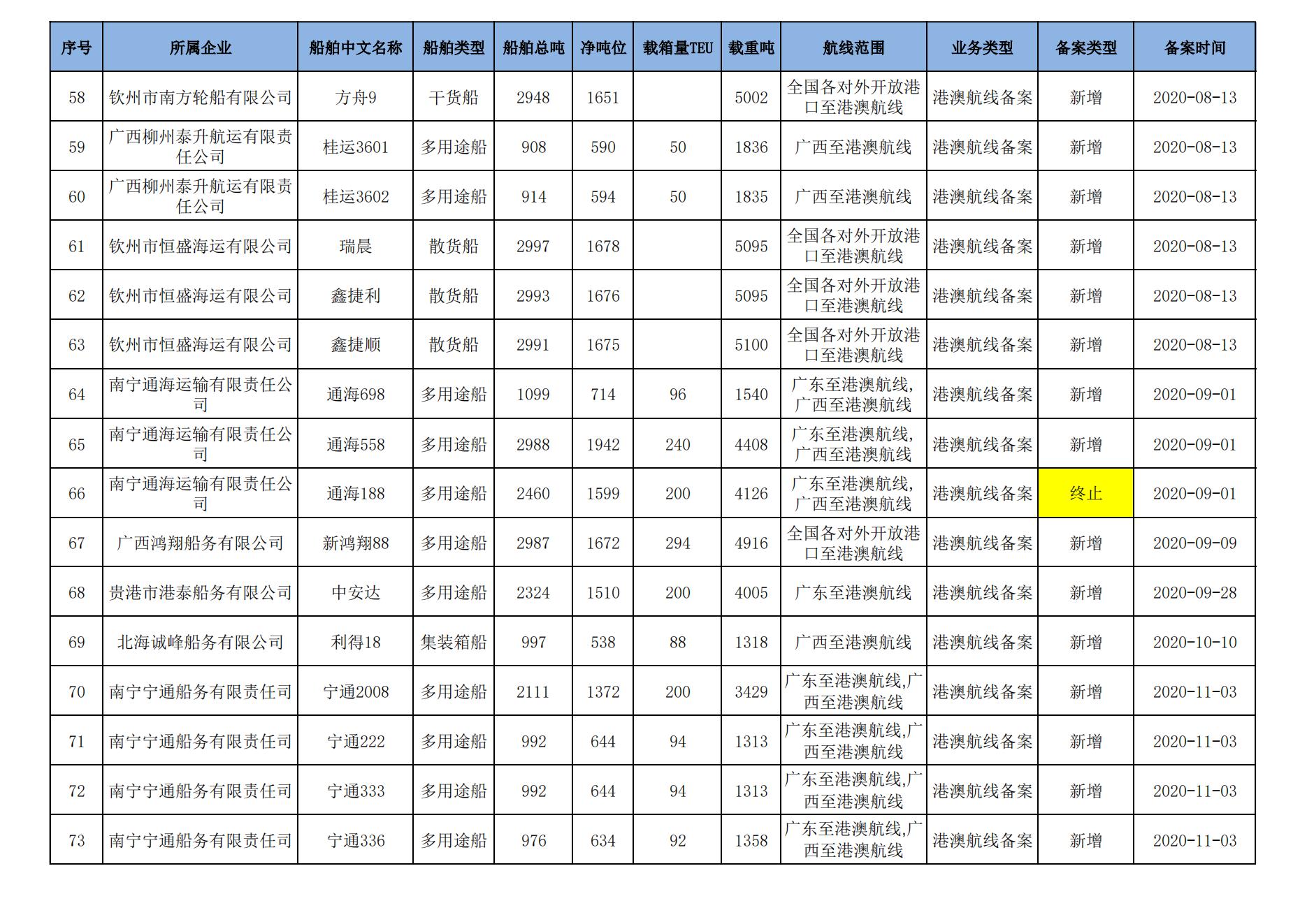 截至2024年8月11日在91porn部水路运输建设综合管理信息系统完成备案的港澳航线水路运输船舶