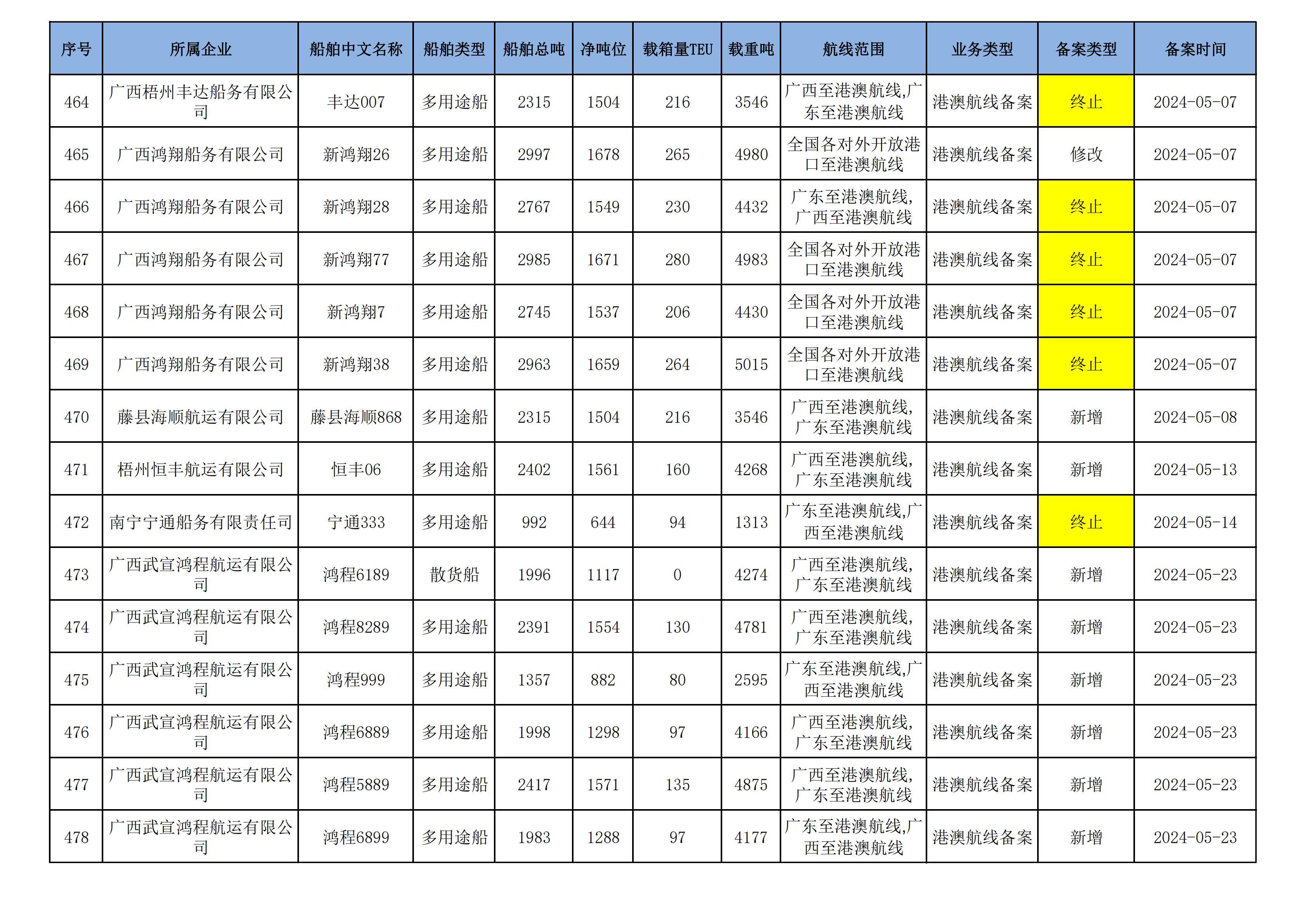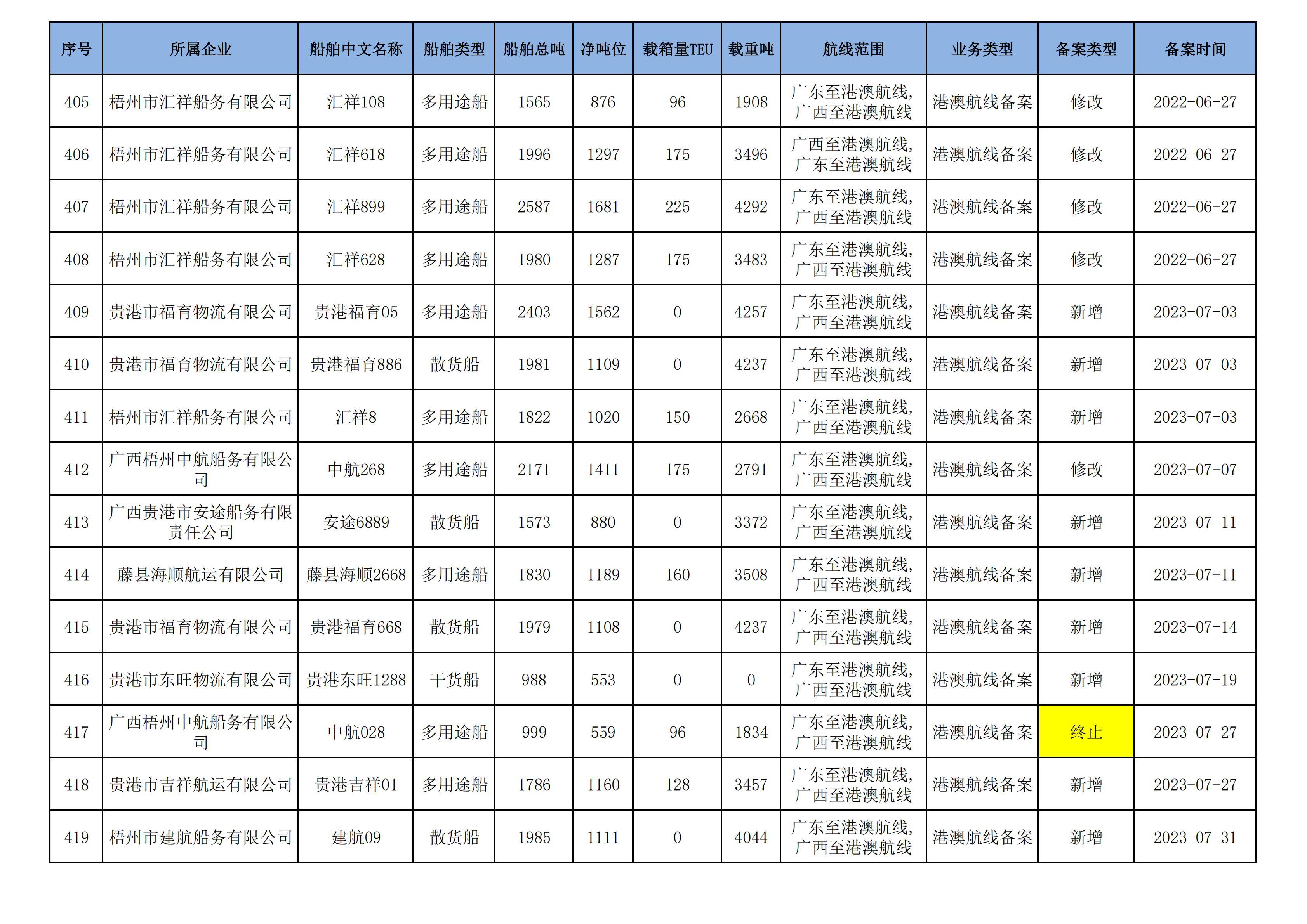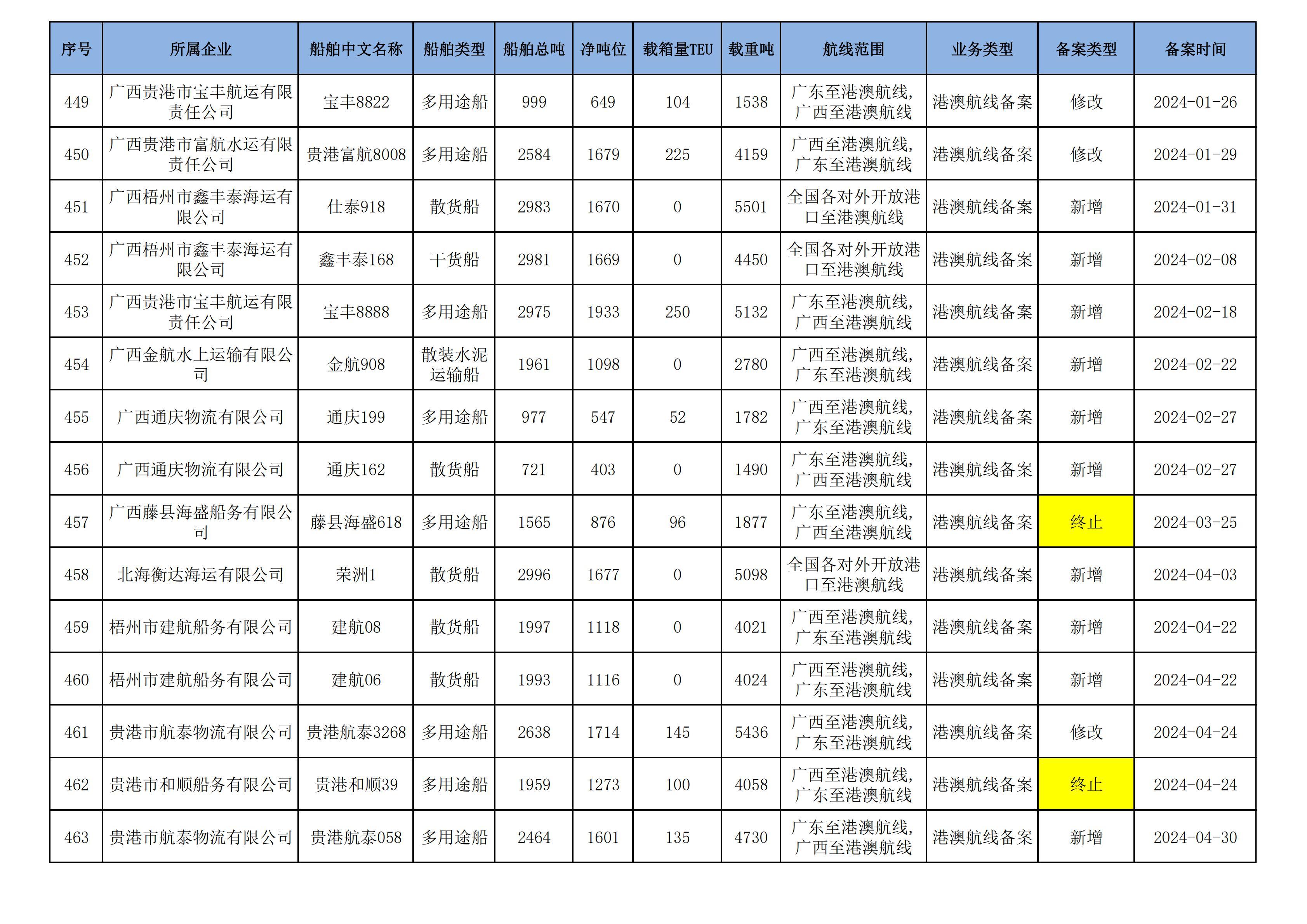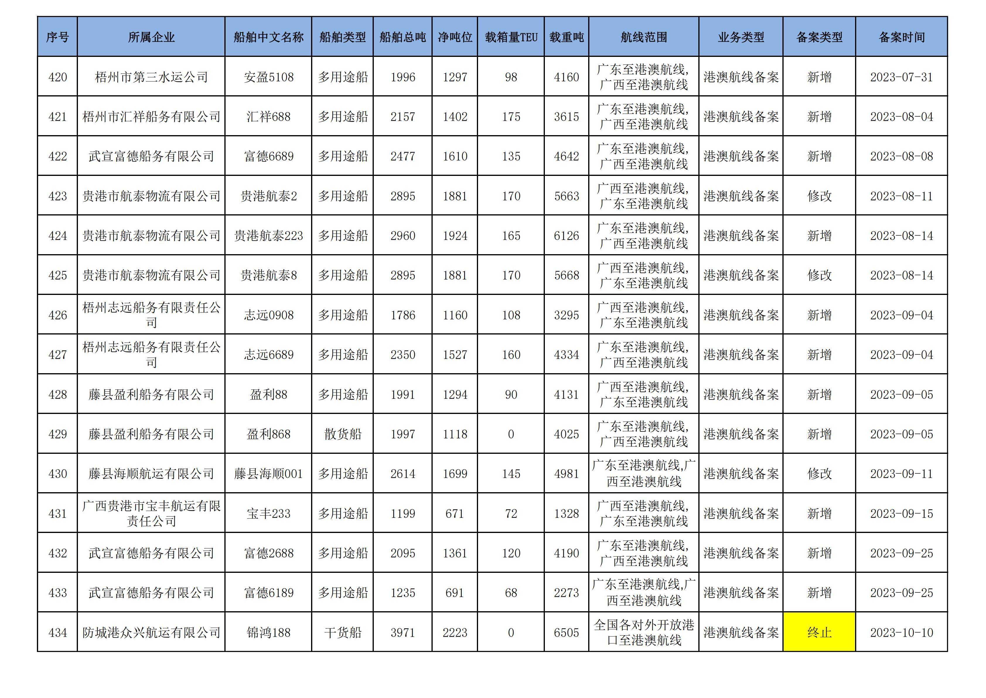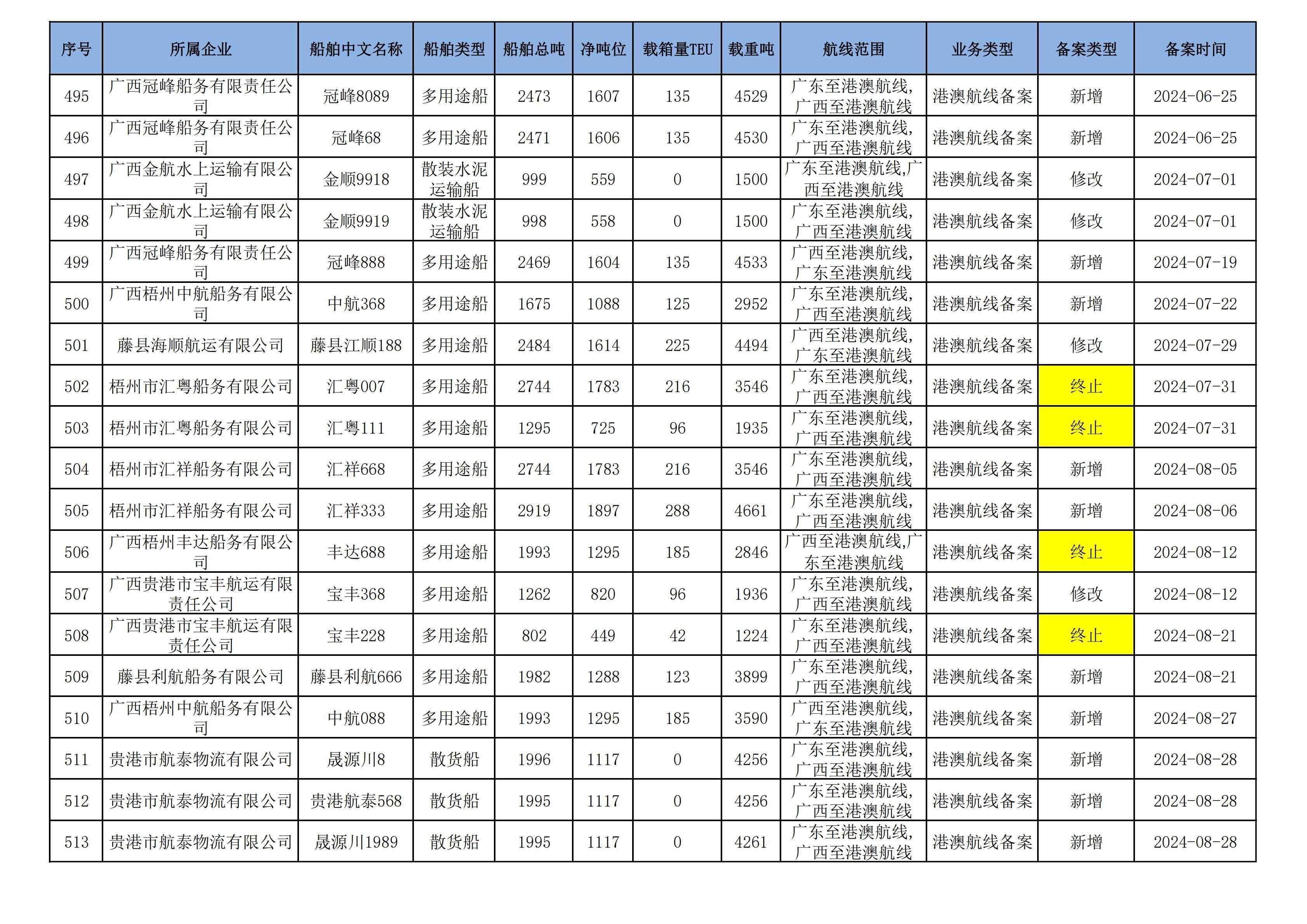 截至2024年12月12日在91porn部水路运输建设综合管理信息系统完成备案的港澳航线水路运输船舶