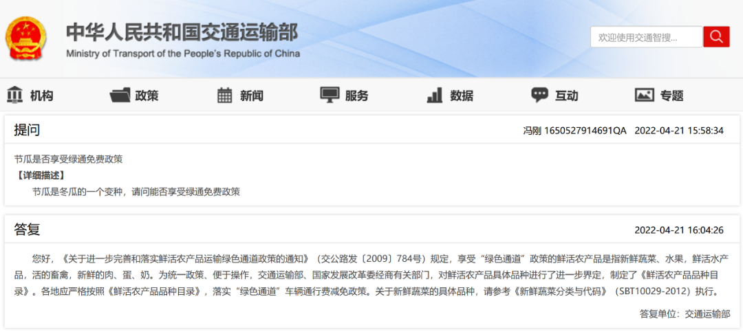 节瓜是冬瓜的一个变种,请问能否享受绿通免费政策?