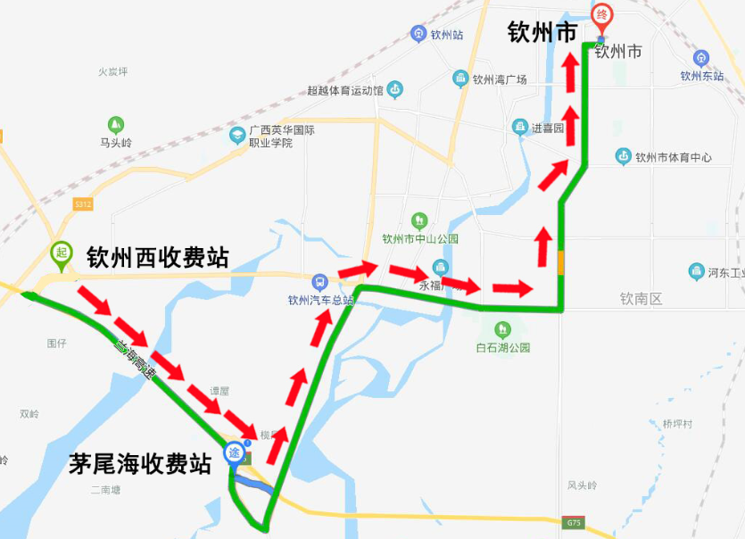 G7212柳北高速→石湾北收费站→石湾镇→东山路→合浦
