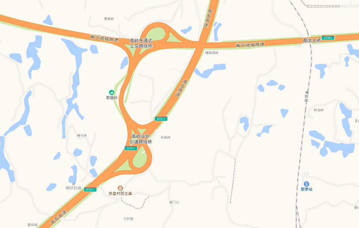 出城:可选择绕开南宁东收费站,从南宁绕城高速安吉、高峰、五塘、八鲤、玉洞西等收费站进入高速公路,途经G7201南宁绕城高速→那容互通立交匝道→G72柳南高速往伶俐、六景、宾阳、柳州、桂林等方向行驶。