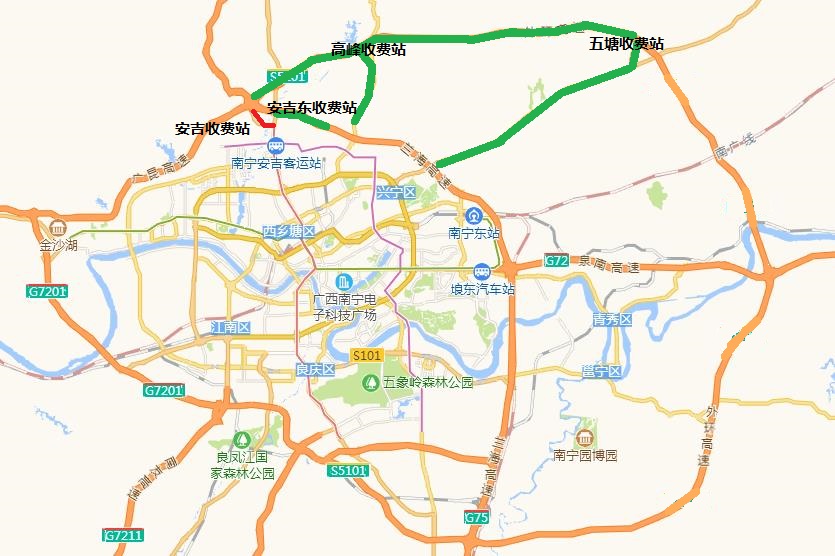 进城:可选择绕开安吉收费站,从安吉东、高峰、五塘收费站进入南宁市区。