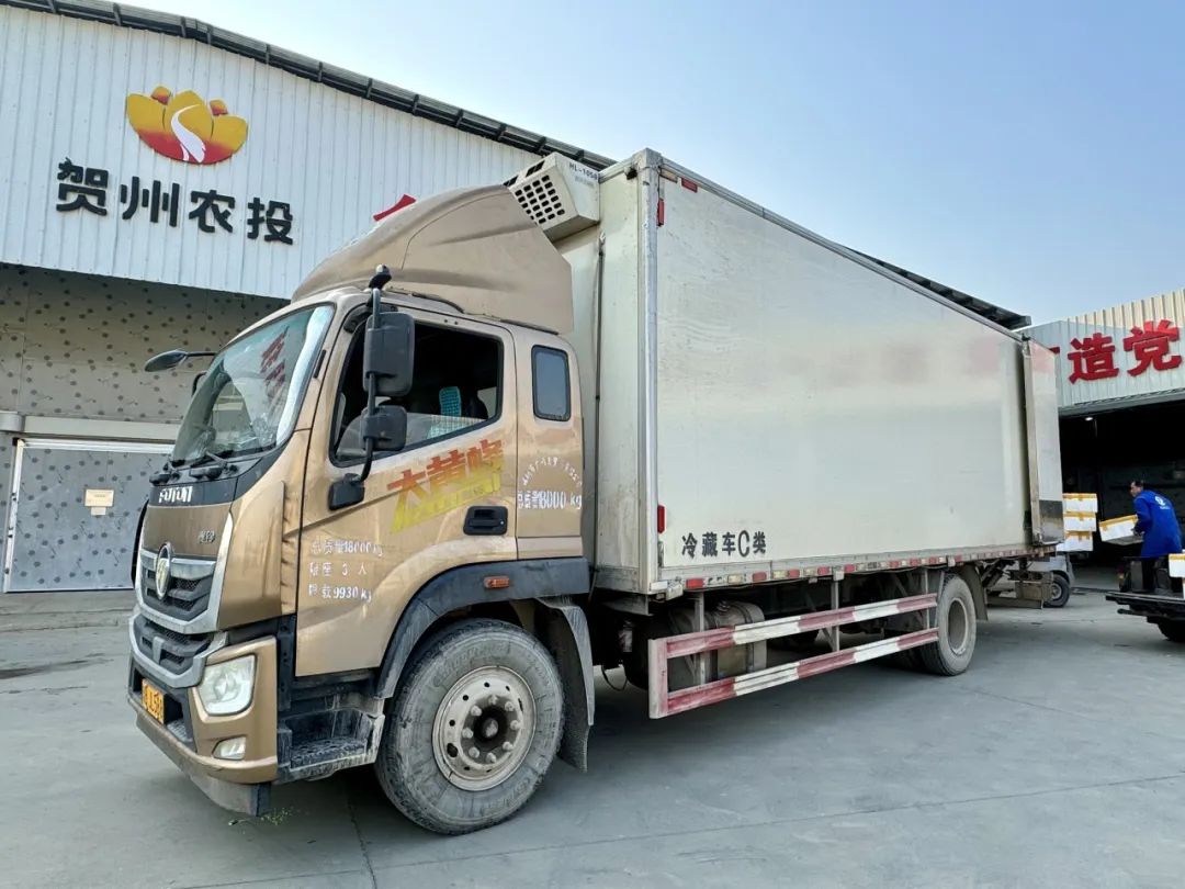 贺州市八步区铺门镇东融供港蔬菜基地正在装运蔬菜的冷链货车。(韦陈彦 摄)