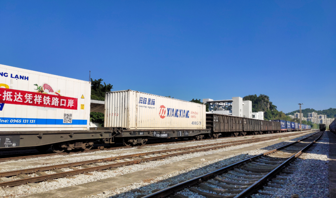 全国首票铁路进口越南鲜食椰子到达凭祥站。(李军 摄)
