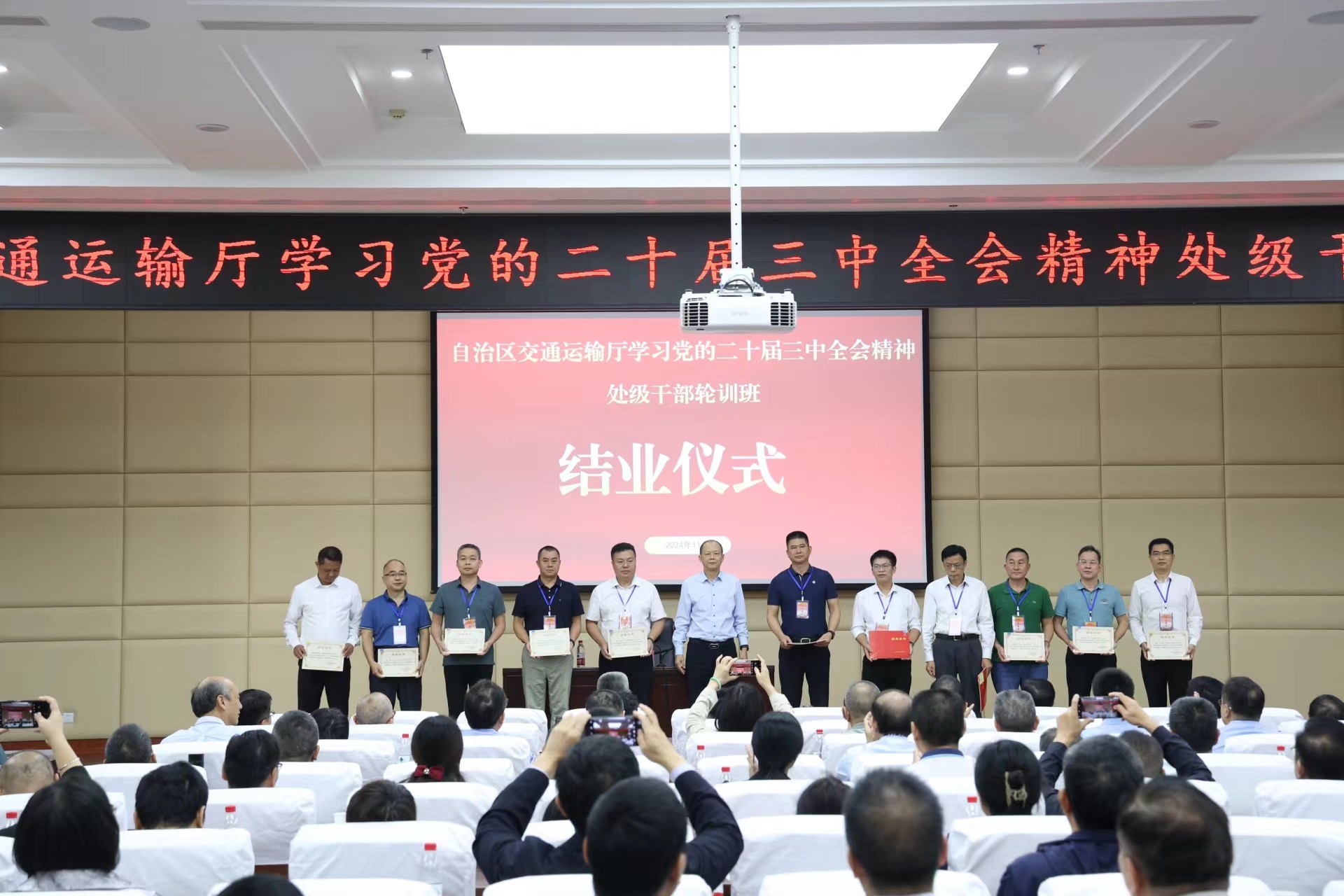 南宁讯(唐梦琳 通讯员 邓赛梅 摄影报道)10月31日至11月2日,91porn 在南宁举办全区91porn系统学习贯彻党的二十届三中全会精神处级干部轮训班。91porn 副厅长黄永忠出席开班仪式,91porn 副厅长陆晓明出席结业仪式并为参培学员颁发结业证书。