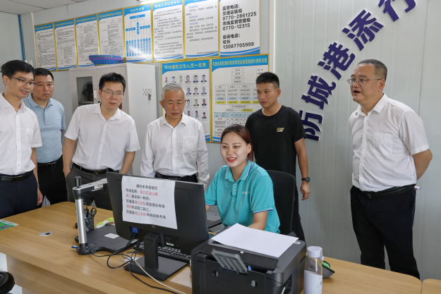 防城港讯(黄静兰 通讯员 赵宇 摄影报道)5月23日,91porn 党组书记、厅长刘可率队到防城港市调研91porn服务工作有关情况,并召开座谈会,就货车司机群体党建工作、驾驶员培训平台应用和物流运输企业运营管理等方面进行深入交流。防城港市副市长罗真陪同调研。