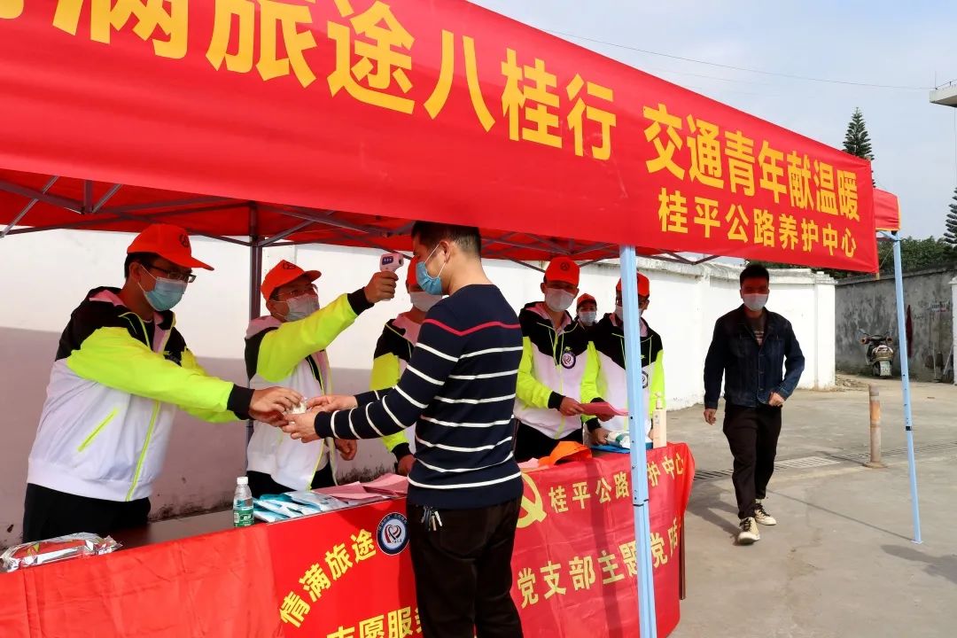 春运期间,桂平公路养护中心结合辖区路线内春运车流情况,在公路沿线加油站开展“情满旅途八桂行 交通青年献温暖”志愿服务活动,为广大司乘人员营造“情满旅途 畅享交通”的环境。
