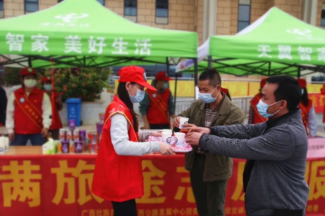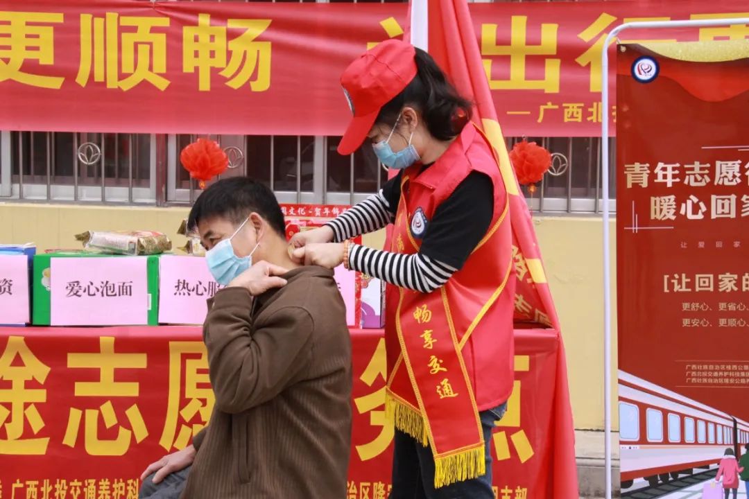2月2日,桂西公路发展中心团委、隆安公路养护中心团支部、广西北投交通养护科技集团团委组织30余名青年团员在隆安东站、隆安汽车总站、国道358线上的古潭服务区开展“情满旅途”学雷锋志愿活动,为春运旅客提供贴心服务。