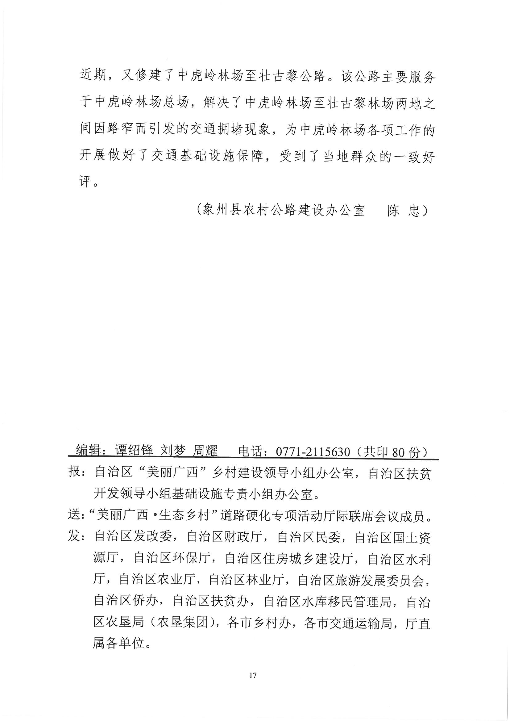 自治区“美丽广西•生态乡村”道路硬化专项活动 自治区交通脱贫攻坚 工作简报(2016年第5期)