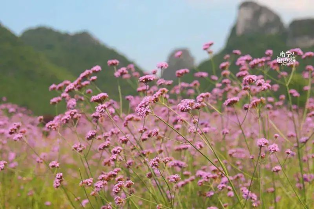 柔和的风伴着紫色马鞍草