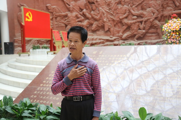 梁炳聪在讲述邓小平在龙州期间的故事。