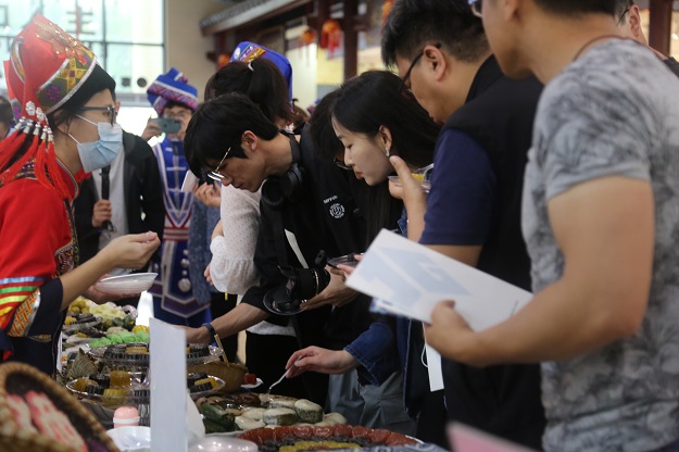 媒体采访团品尝“那”美食。