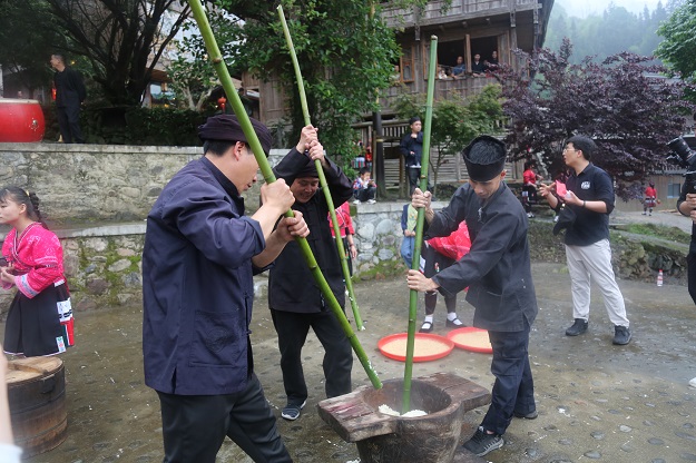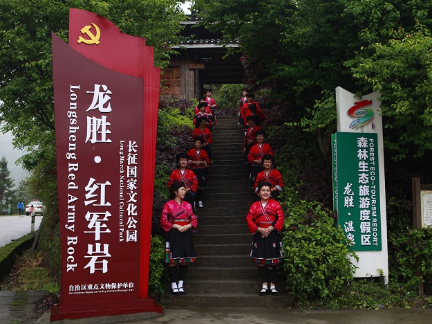 4月24日“沿着高速看中国——红色之旅看交通”主题宣传活动广西站在桂林市龙胜各族自治县拉开序幕。媒体采访团沿G65包头至茂名高速公路,抵达龙胜各族自治县泗水乡周家村白面瑶寨。