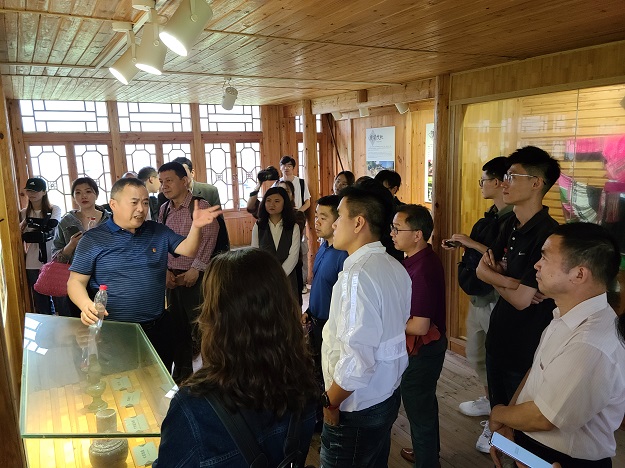 讲解员在红瑶博物馆向来客介绍民族文化。