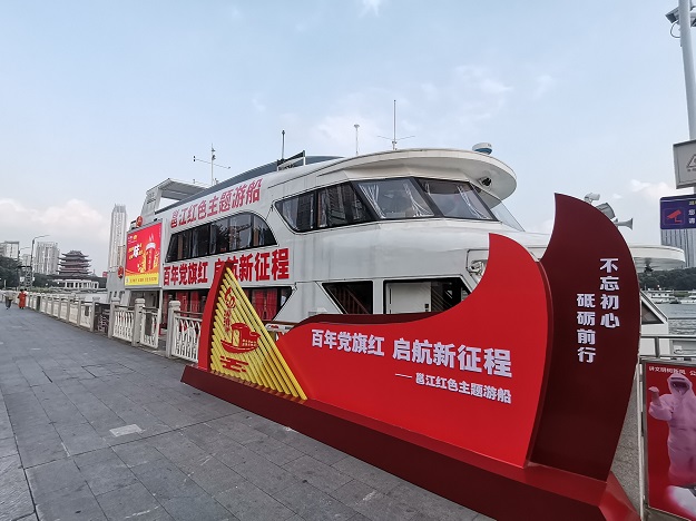 4月26日,“沿着高速看中国”主题宣传活动媒体采访团来到南宁市区参观邓颖超纪念馆,并登上“百年党旗红 启航新征程”邕江红色主题航船回顾党的百年历程。媒体采访团还来到南宁国际空港综合交通枢纽工程项目(以下简称GTC项目)和广西北部湾国际港务集团有限公司总部,实地了解GTC项目建设概况、广西北部湾港口发展情况。