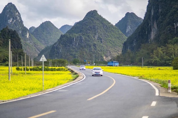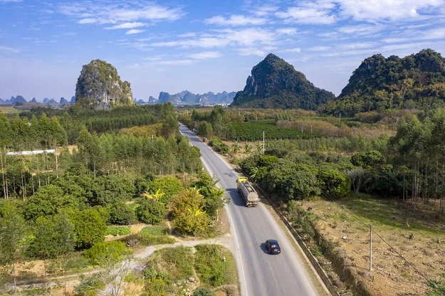 国道324线容县至岑溪一级公路上锦绣如画。