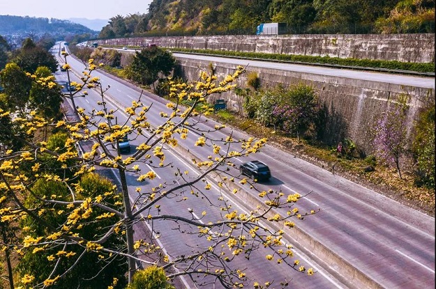 高速公路、普通公路旁的花竞相开放