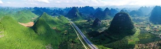 “人在车中坐,车在画中行”。近日,“沿着高速看中国——红色之旅看交通”采访团沿着高速看大美广西,在采访途中体验了包茂高速上的最美山水之旅。桂林至阳朔高速公路(以下简称桂阳高速)是中国国家高速公路网中G65包茂高速公路的重要组成部分,沿途独特的喀斯特地貌孕育了如诗如画的风景,穿行其中的高速公路宛若游走于山水间的巨龙,一幅幅美丽的桂林山水画卷映入眼帘,让采访团一行大饱眼福。