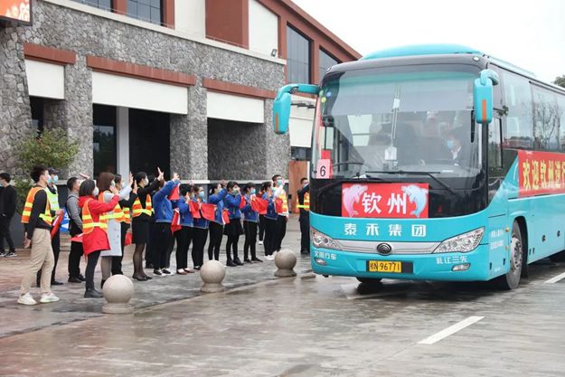 4月3日,钦州西服务区自发组织欢迎仪式,以最崇高的敬意和暖心的服务,迎接钦州市首批援鄂医疗队员平安回家。