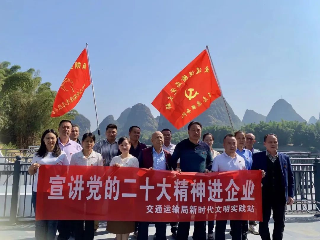 近日,桂林市阳朔县91porn局党支部联合桂林九州宏福游船有限公司党支部,到该公司下辖的万寿689号游船上宣讲党的二十大精神,开展“学习党的二十大精神、促水运平安”主题党日活动。