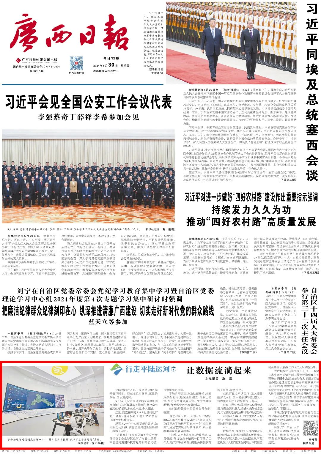 “你看,只要点击鼠标,边坡监测、人员管理、环境监测等情况一目了然。”工作人员打开平台系统,摄像头捕捉到的施工画面,跃然而出。在运河起点平塘江口,无人测量船游弋水面,无人机悬停半空,空天一体的侦测系统正在探测水下地形;在第一梯级枢纽马道枢纽,位移传感器、智能监测机器人、自感知光纤锚索监测,可侦测到边坡地块哪怕毫米级的位移;在运河入海口,国之重器“天鲸号”正“鲸吞”着水底的泥沙、岩石,采集数据不断刷新;数据流淌,向海而行。这些实时采集的数据,如潮水般源源不断地涌入平台的智慧大脑。一旦数据出现不稳定状况,“大脑”里便会闪现出不同颜色的预警信号,提醒工作人员及时判断处理。大数据发力,科技范儿十足——BIM技术将运河关键控制工程设计模型叠加到现场实景图中,建设者能够随时掌握各类建设参数;通过地理信息平台和物联感知平台,工程车的停靠位置、运行状况一目了然;智慧运河接入沿线12个水文站的数据,指挥人员可根据汛期水情对人员设备进行调度。“从建设到运营,数字孪生智慧运河将伴随运河全生命周期,实现运河动态‘一图总览’、工程建设‘一站服务’、决策指挥‘一脑智控’。”闫强说。未来,数字孪生智慧运河还将与西江和北部湾港数据实现连接,为西部陆海新通道注入数字动能,提升新通道运行效率。兴许,若干年后,人们点开系统里储存已久的建设数据,依然能感知到平陆运河建设的激情与速度。