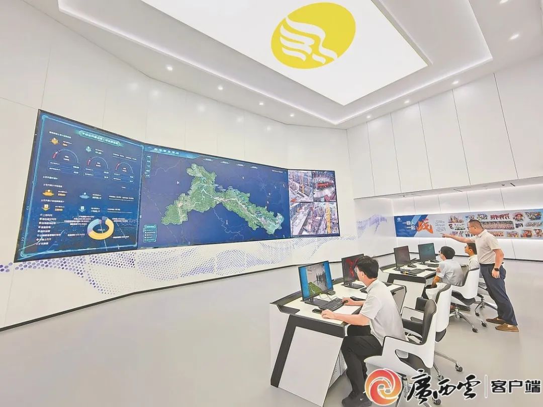 在平陆运河建设调度指挥中心,工作人员正在操作“数字孪生智慧运河”系统。广西日报-广西云客户端记者 徐天保 摄