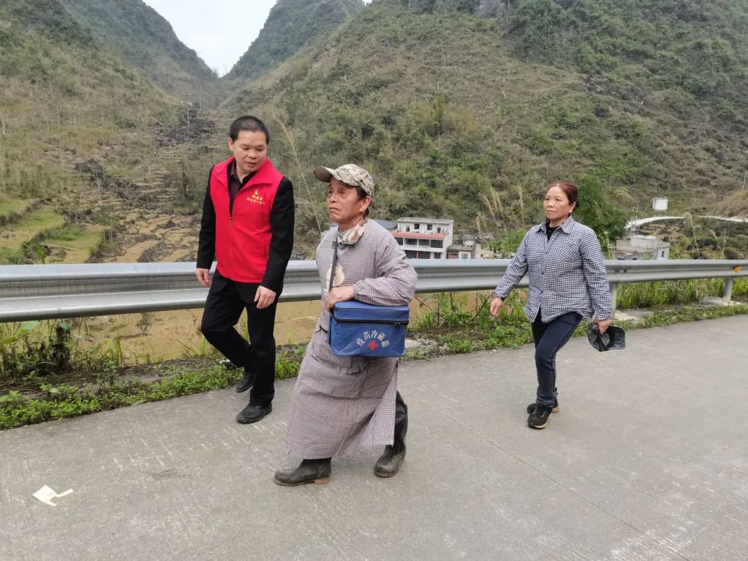 行路难,是蒙秀金40年前面临的最大工作难题。古朝村村委会共管辖30多个自然屯,相互靠着各种弯曲的山路连通。在那个完全“靠腿”的年代,无论刮风下雨,蒙秀金都只能背着药箱、迈着双腿,穿梭在狭窄崎岖的山路上,他的足迹遍布古朝村四里八乡的深山大弄,鞋子磨烂了一双又一双。