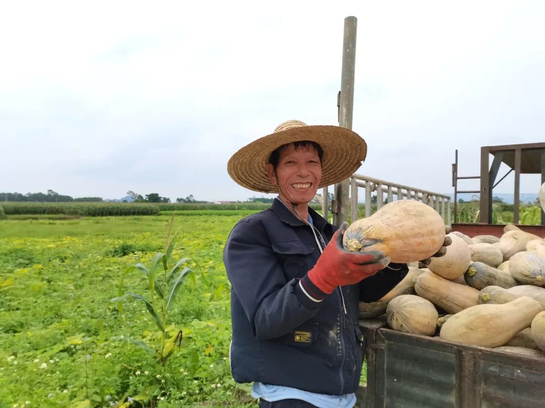 蜜本南瓜丰收,瓜农脸上洋溢着笑容。