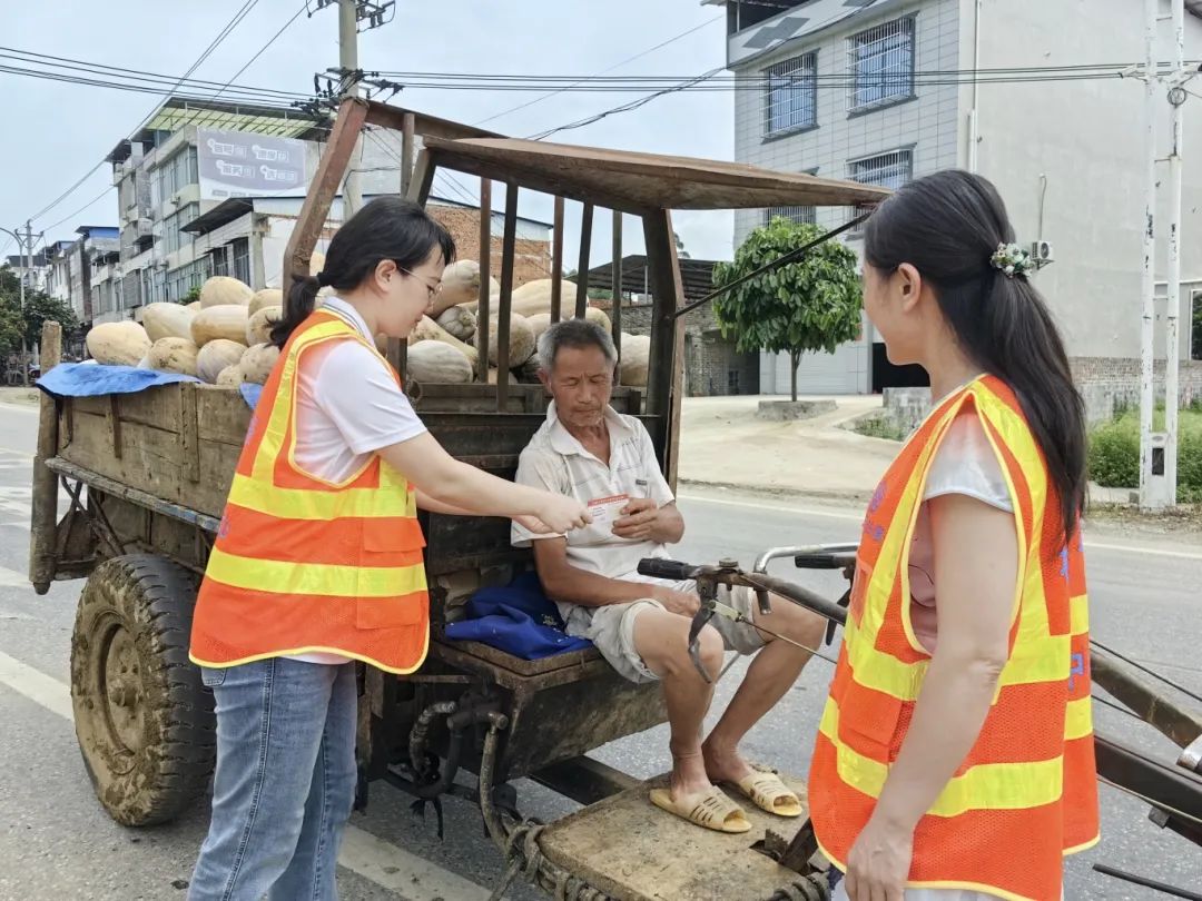 隆安公路养护中心工作人员向公路沿线瓜农普及公路交通安全知识。