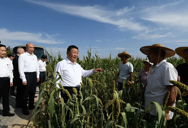 今年9月13日,正在陕西榆林米脂县考察的习近平途中临时下车,走进田间,察看谷子、糜子、玉米长势,同正在田间劳作的老乡拉家常,询问他们生产经营、家庭收入等情况。